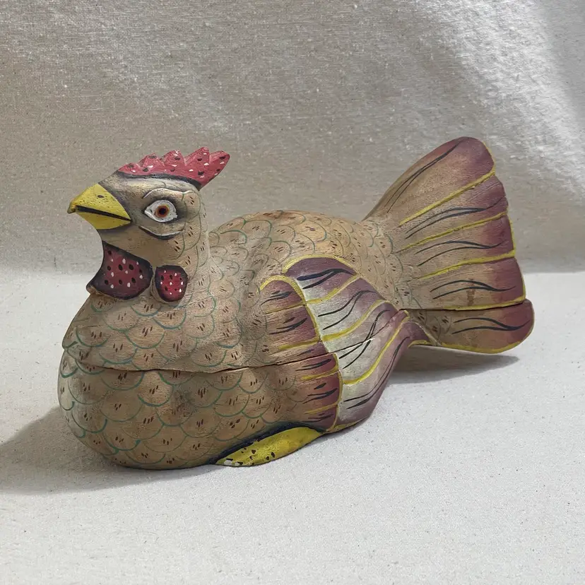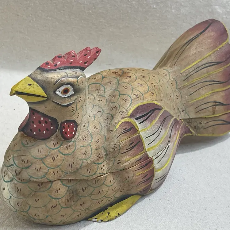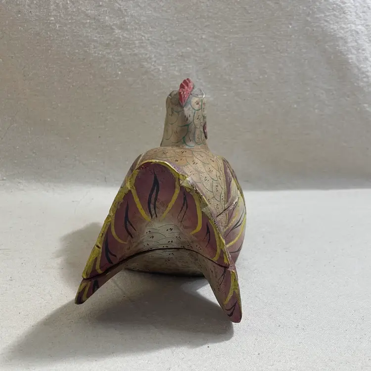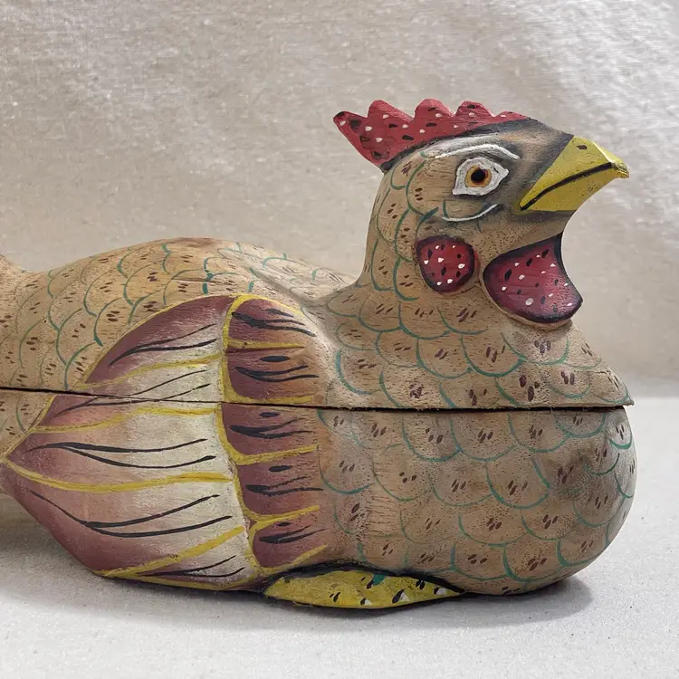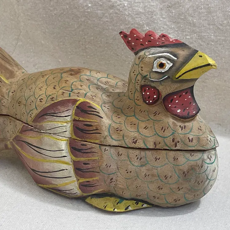 This unique farmhouse decor chicken trinket box is a one-of-a-kind piece that will add personality to any room. This handmade box is perfect for storing small items and trinkets. The box measures 9 inches in length, 5 inches in height, and 3.5 inches in width