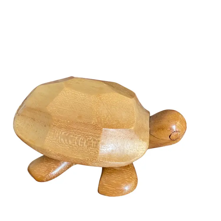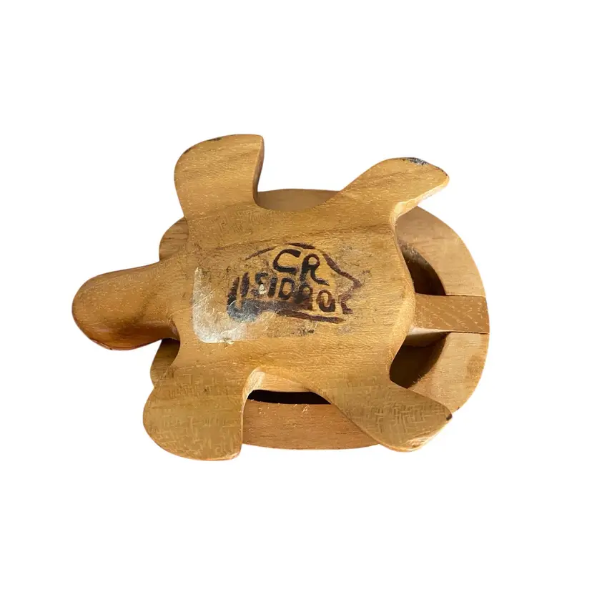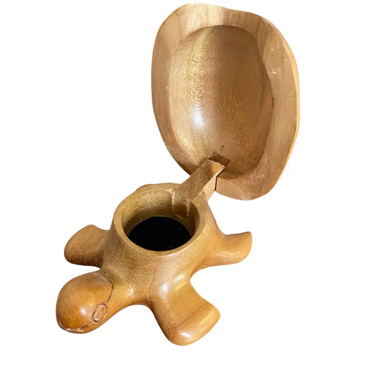 Hand carved wood teak/ironwood turtle trinket box 3.25in signed