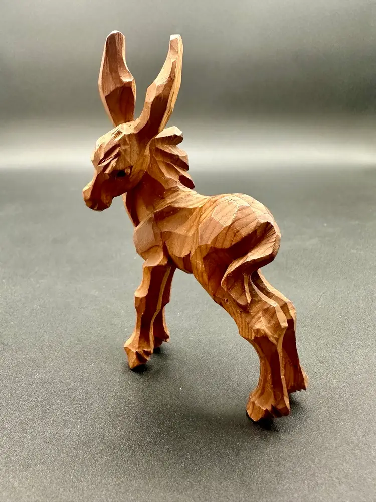 This burro is waaaaay cool. The way his head hangs, the cuts that were made to give his body shape, dimension & movement, the subtle ness of his eyes, it all comes together in this beautiful handmade piece we have before us. His tail and his ears are my favorite parts.