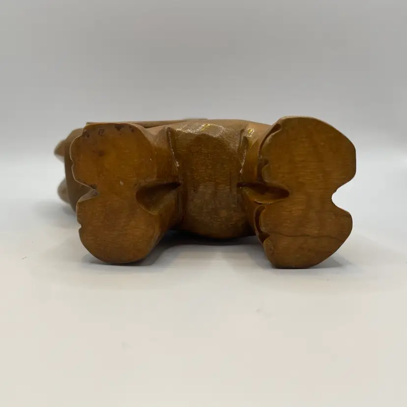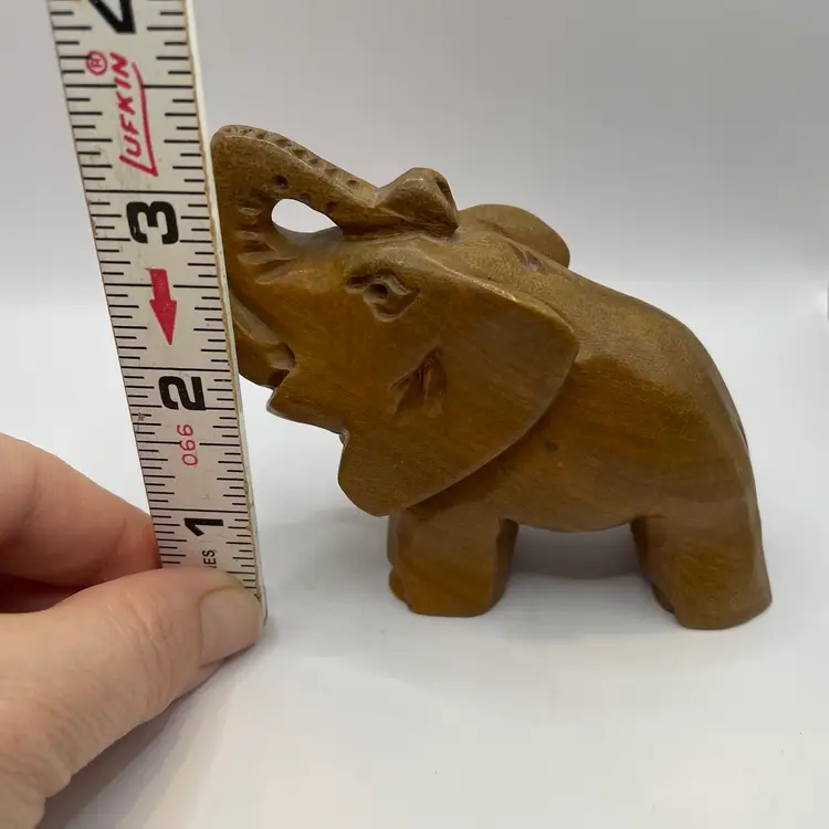 Nice hand carved elephant. Great condition. Still has nice shine to the wood. 3.25" tall by 4" long by 1.5" wide