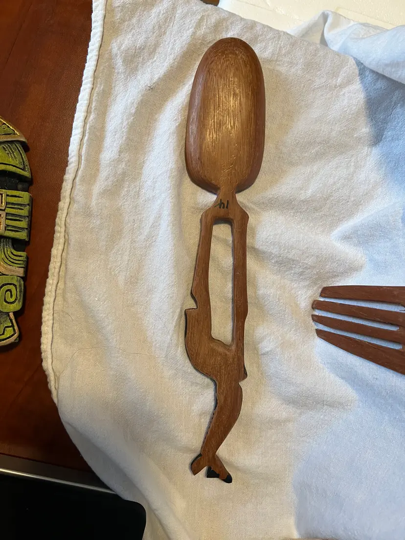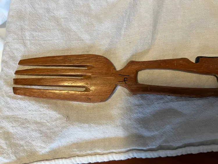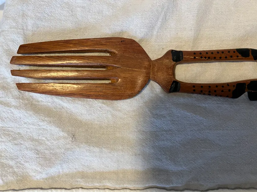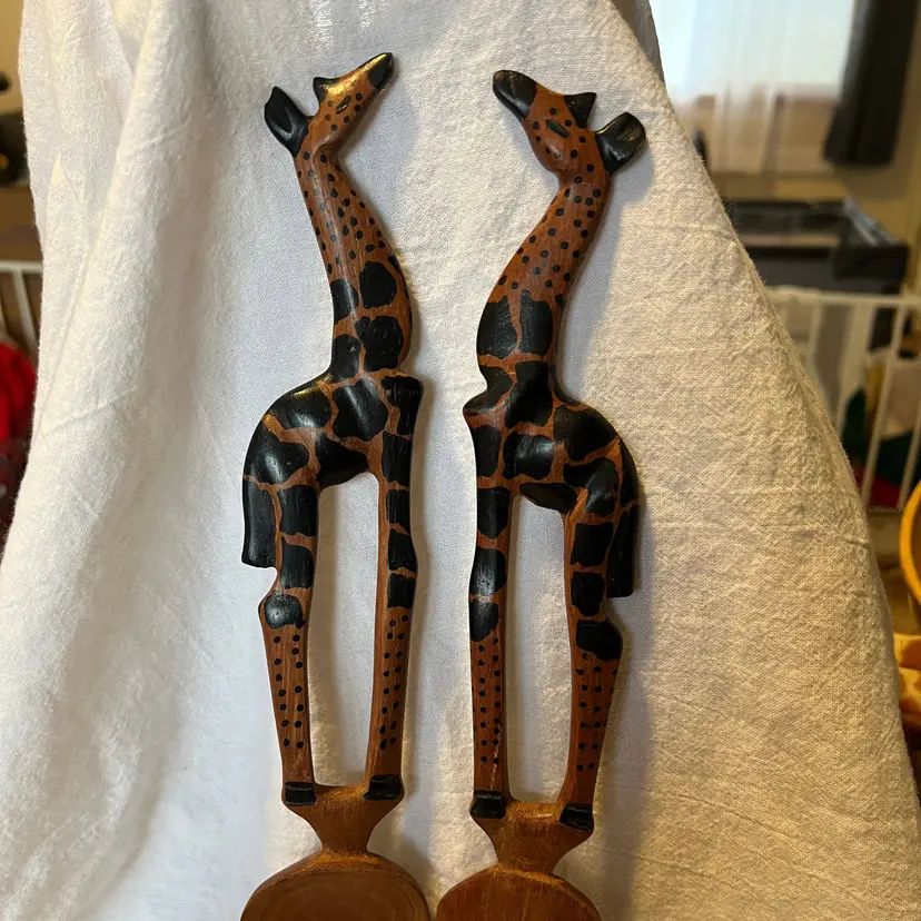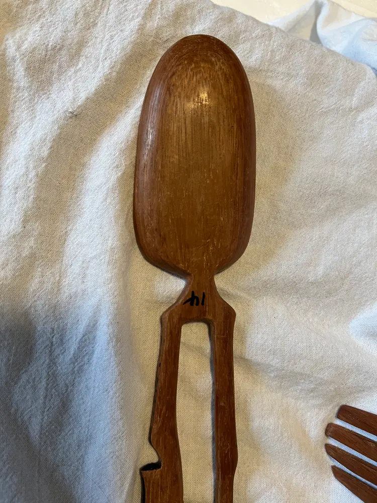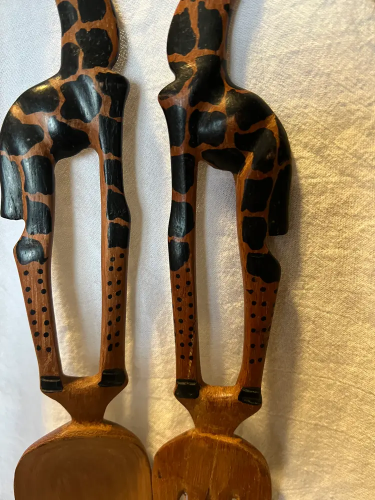 Lovely set of hand carved wooden salad serving utensils. In great condition, please see photos for condition! They do have the number 14 written on the back.