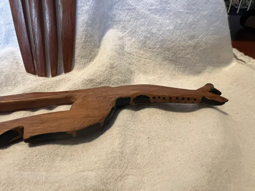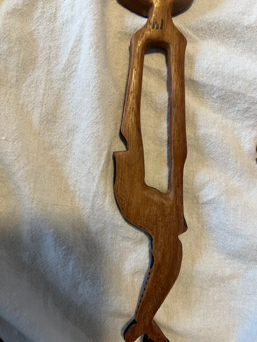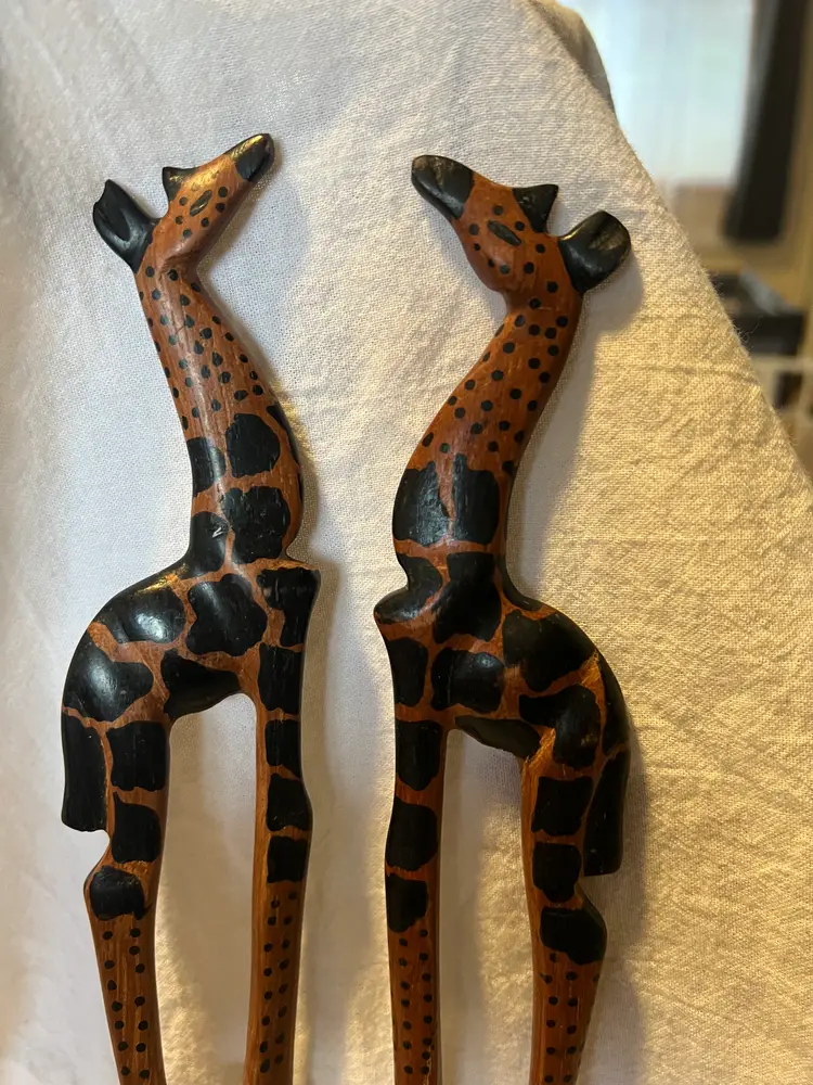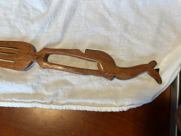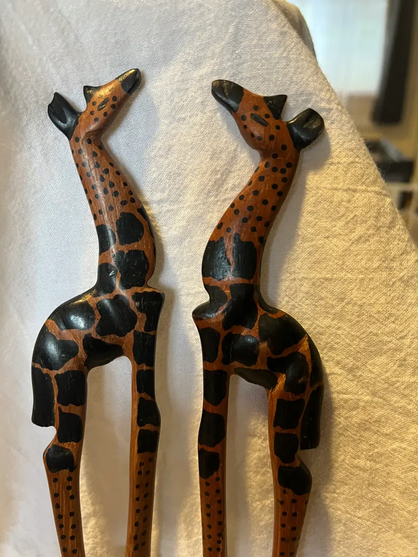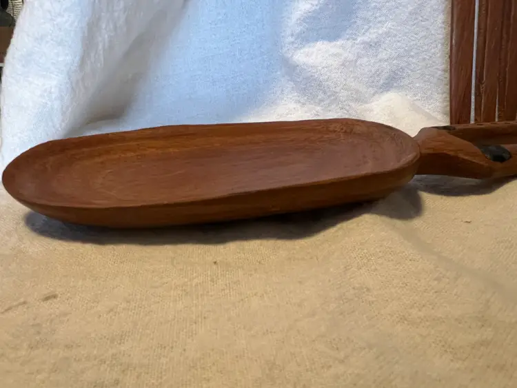 Lovely set of hand carved wooden salad serving utensils. In great condition, please see photos for condition! They do have the number 14 written on the back.