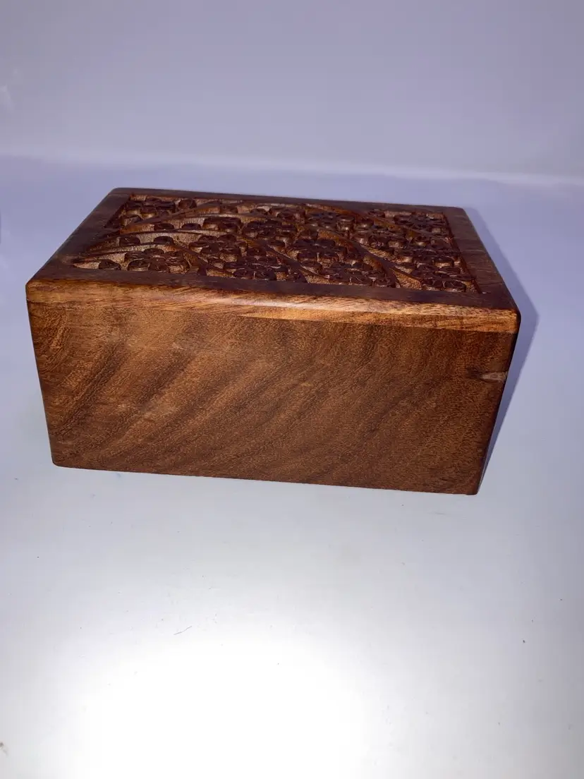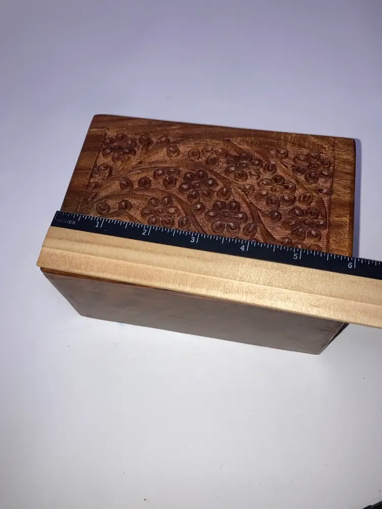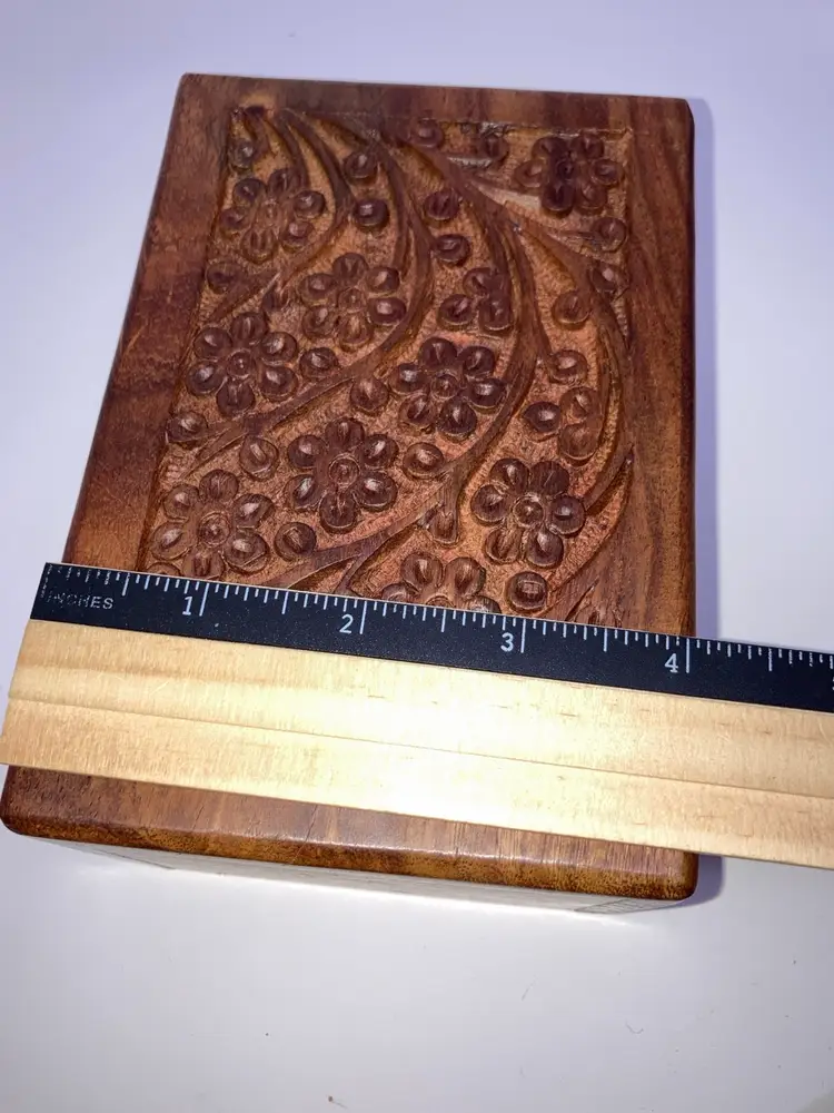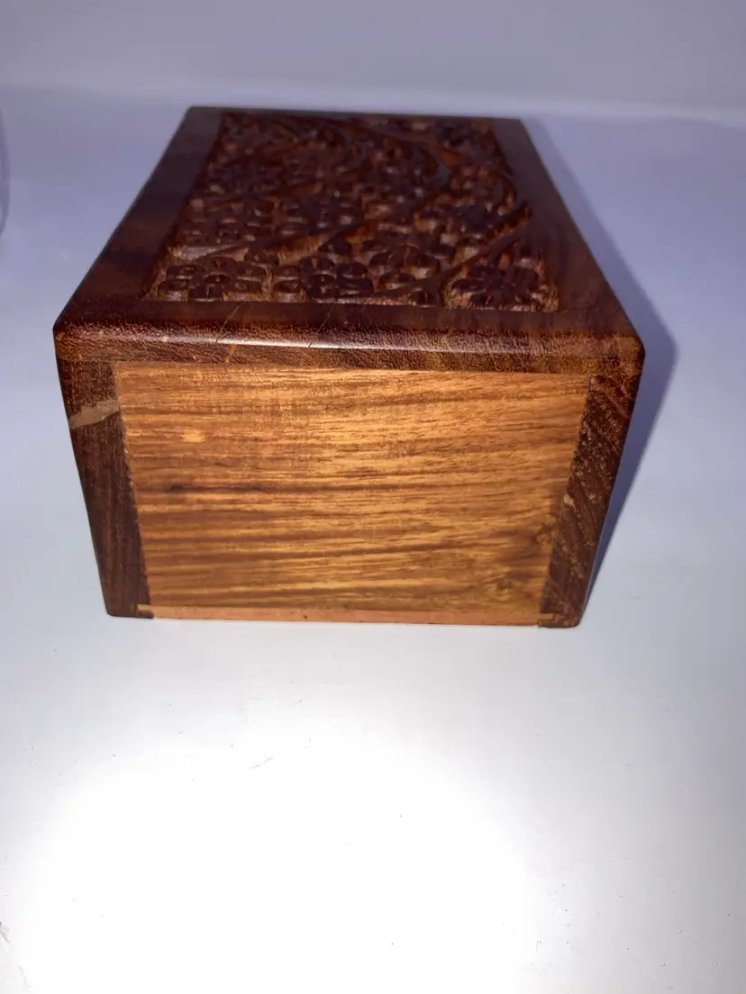 Hand Carved Wooden Stash Box! 3”Tall x 6”Wide x 4”! NEW to District? Enter code Michel42 into your wallet prior to your first purchase and save $5 off of $10 or more! Thank you for checking out my items! Give me a Follow and I'll Follow you back! I do combine shipping and refund for any shipping overages!