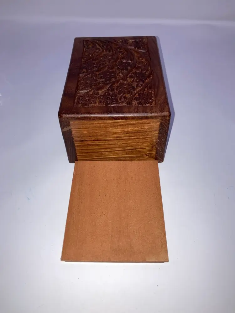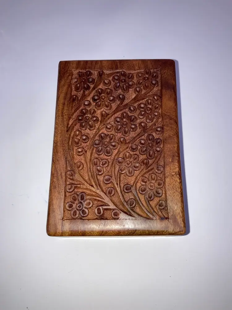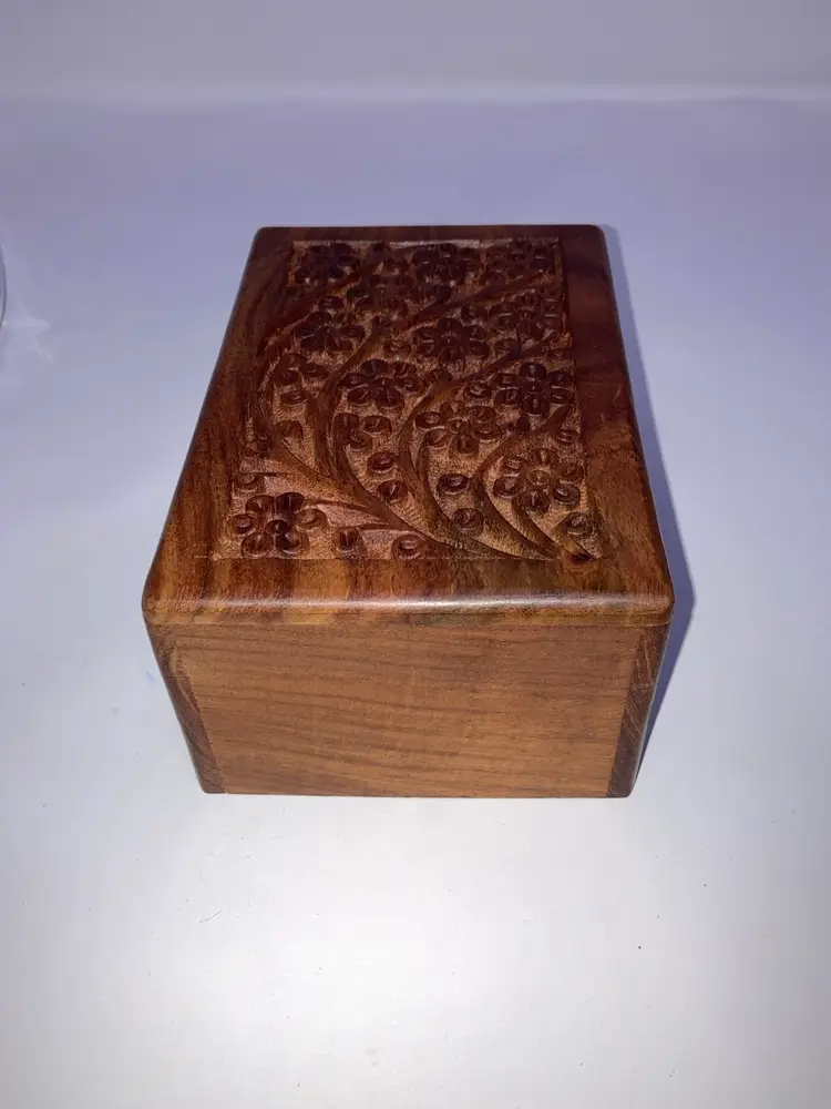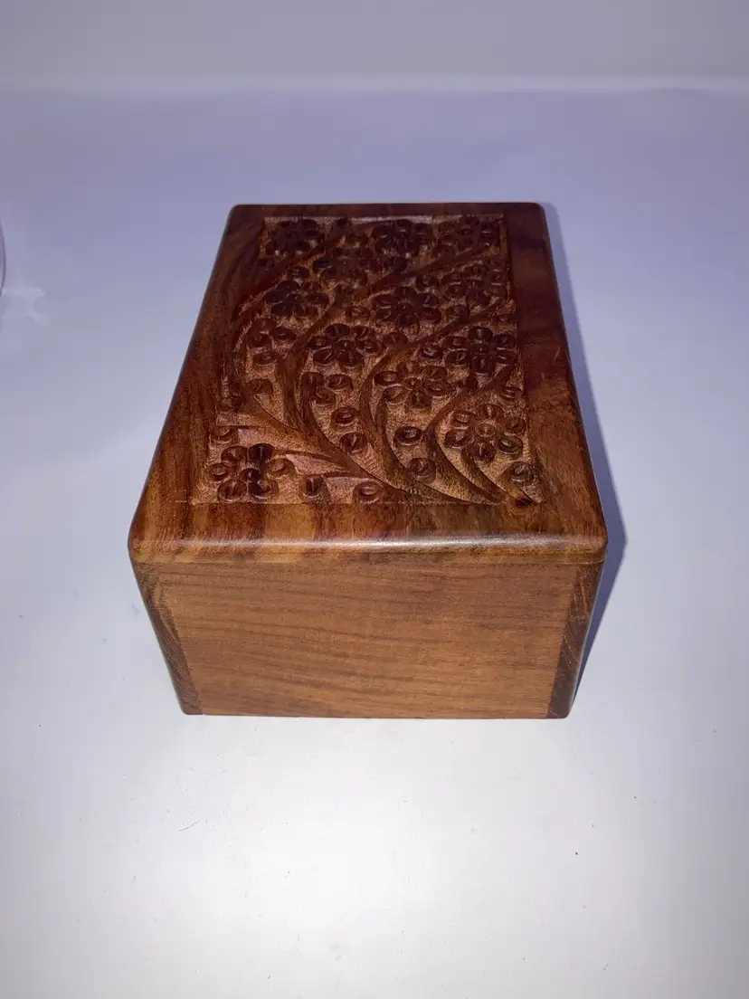 Hand Carved Wooden Stash Box! 3”Tall x 6”Wide x 4”! NEW to District? Enter code Michel42 into your wallet prior to your first purchase and save $5 off of $10 or more! Thank you for checking out my items! Give me a Follow and I'll Follow you back! I do combine shipping and refund for any shipping overages!