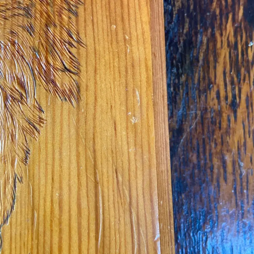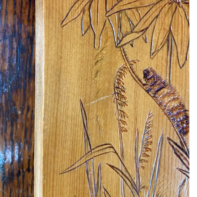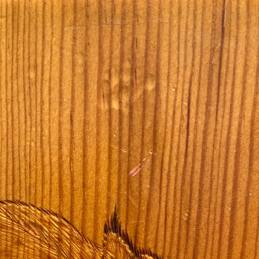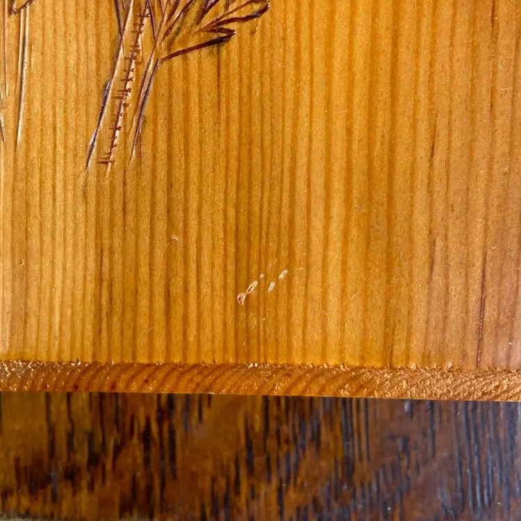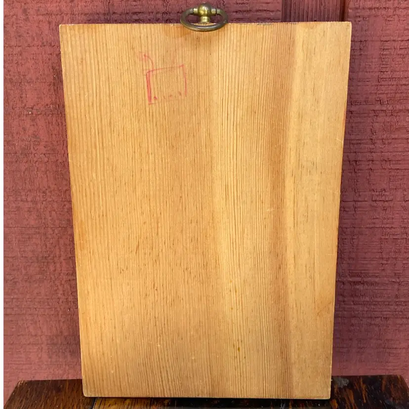 Approx 11 3/8”h with hanger x 7”w x .75”d. Preowned condition. Please see all images as part of description, showing some scratches, dents and pink marks.