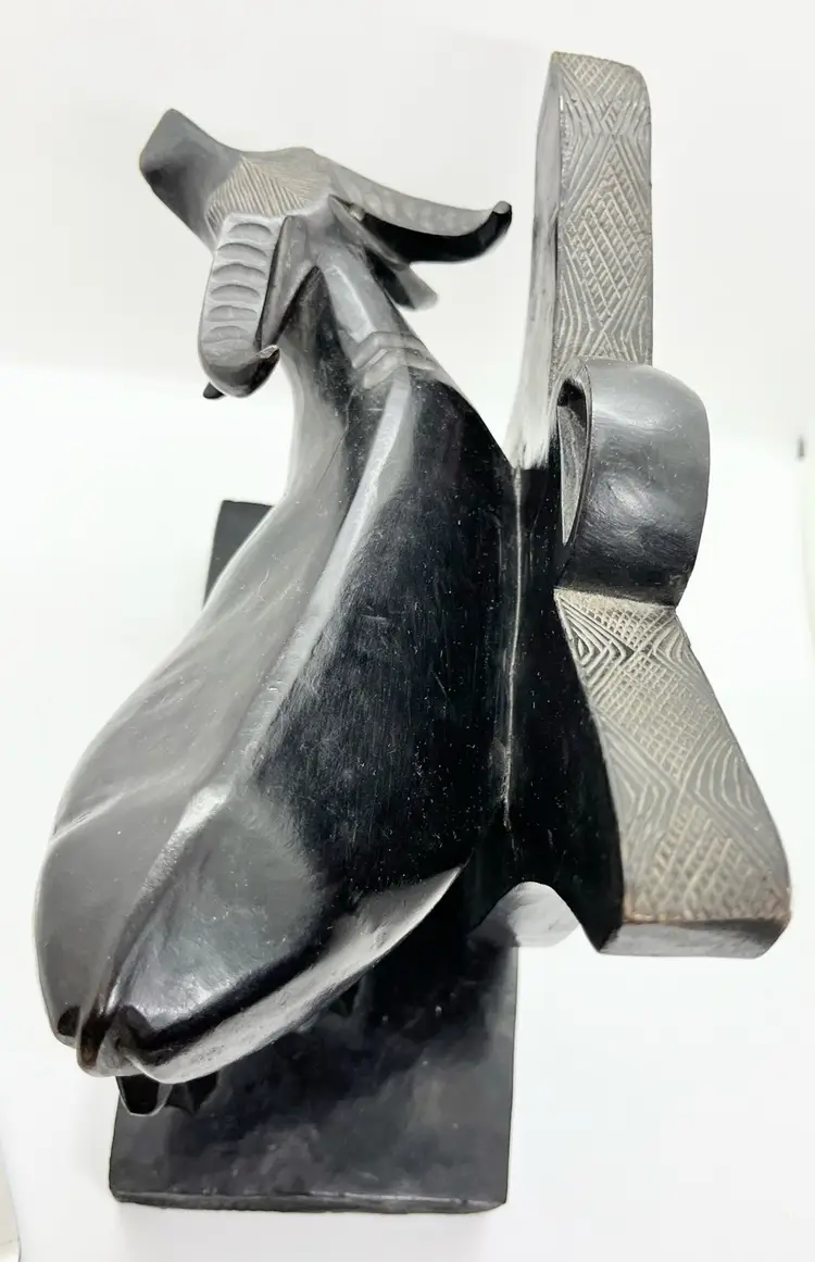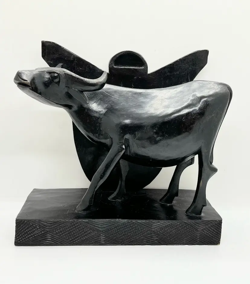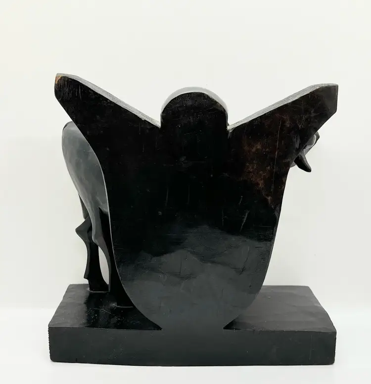 Vintage Hand Carved Wooden Water Buffalo Single Bookend Black. Condition is used.