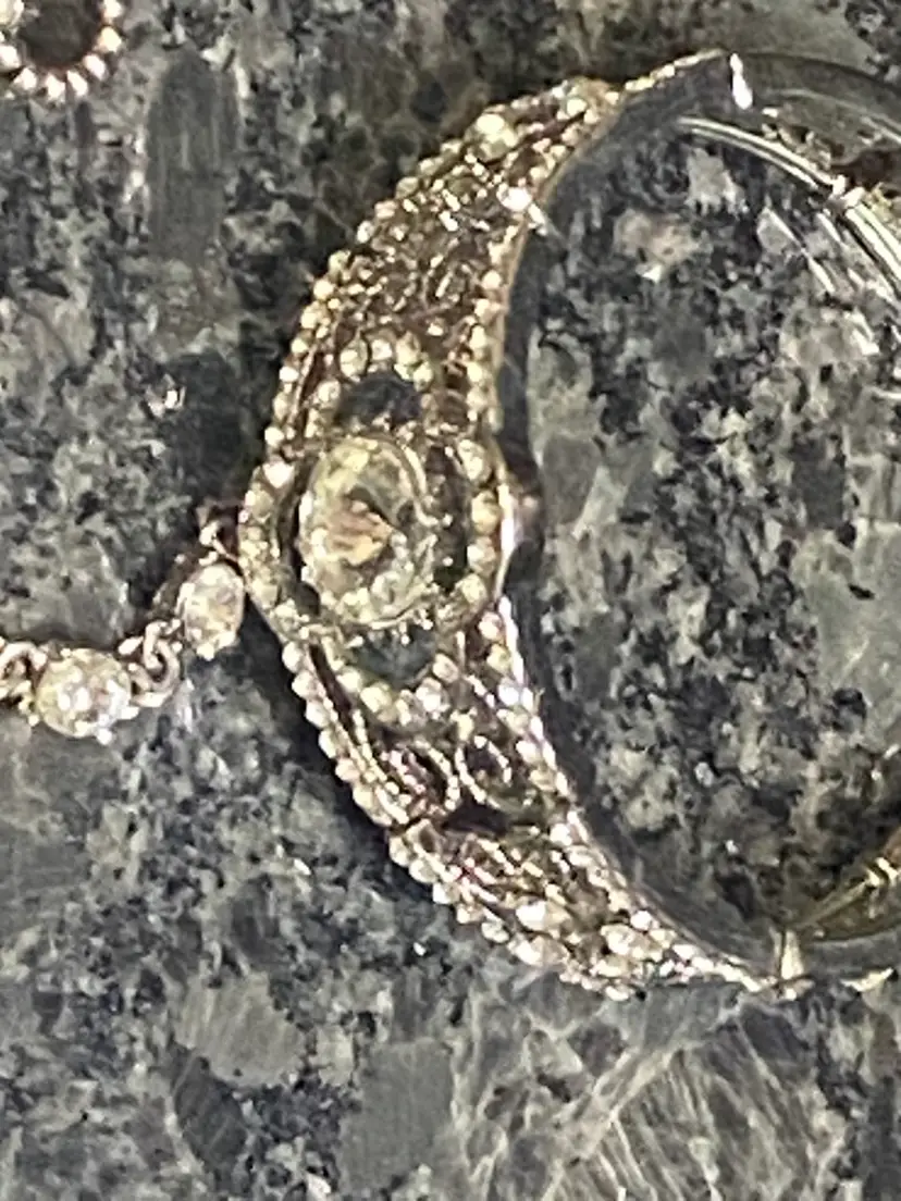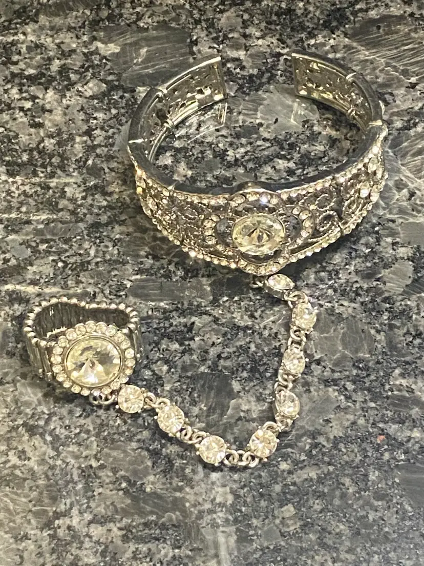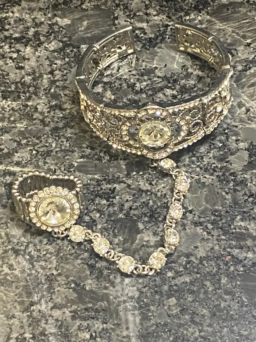 Hand Chain. Connect ring and wrist bracelet with chain. Costume jewelry. Storage locker find.