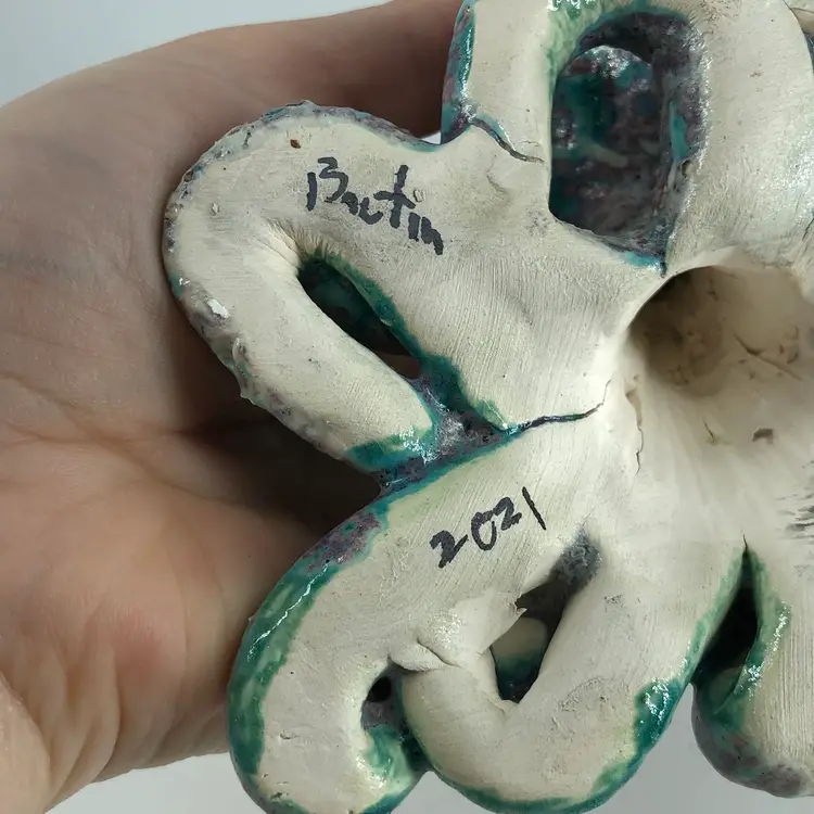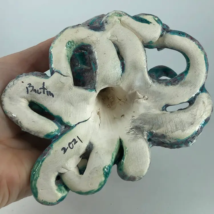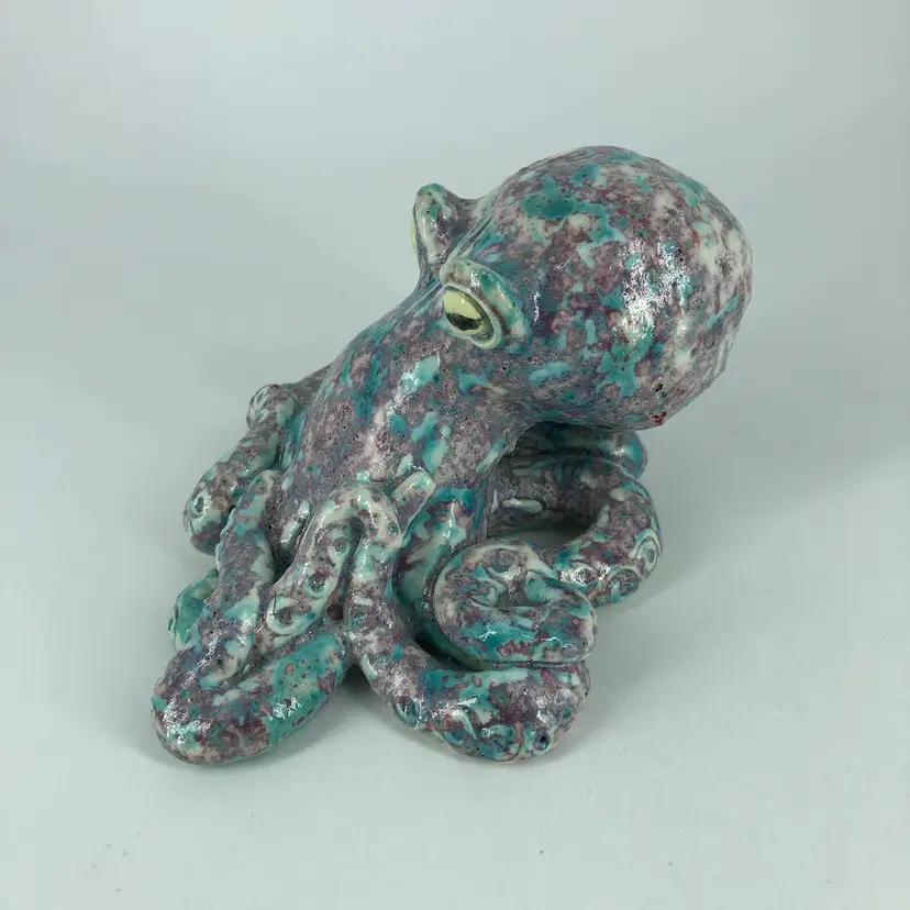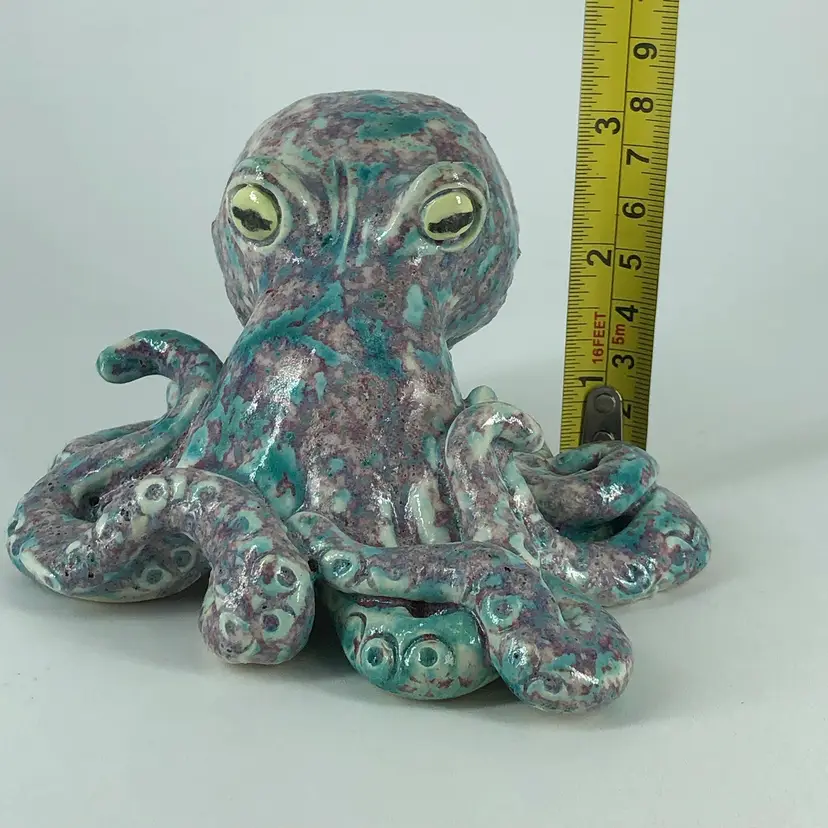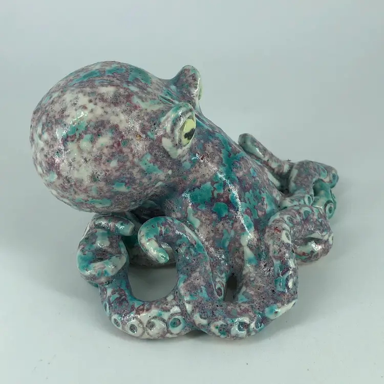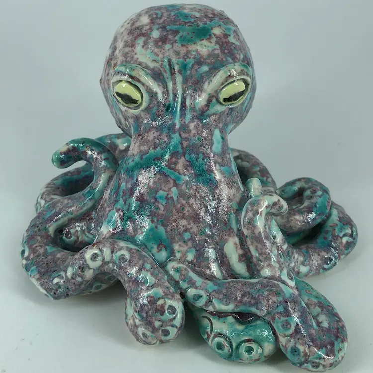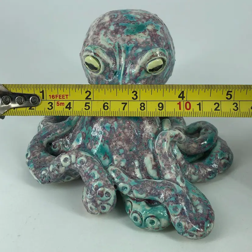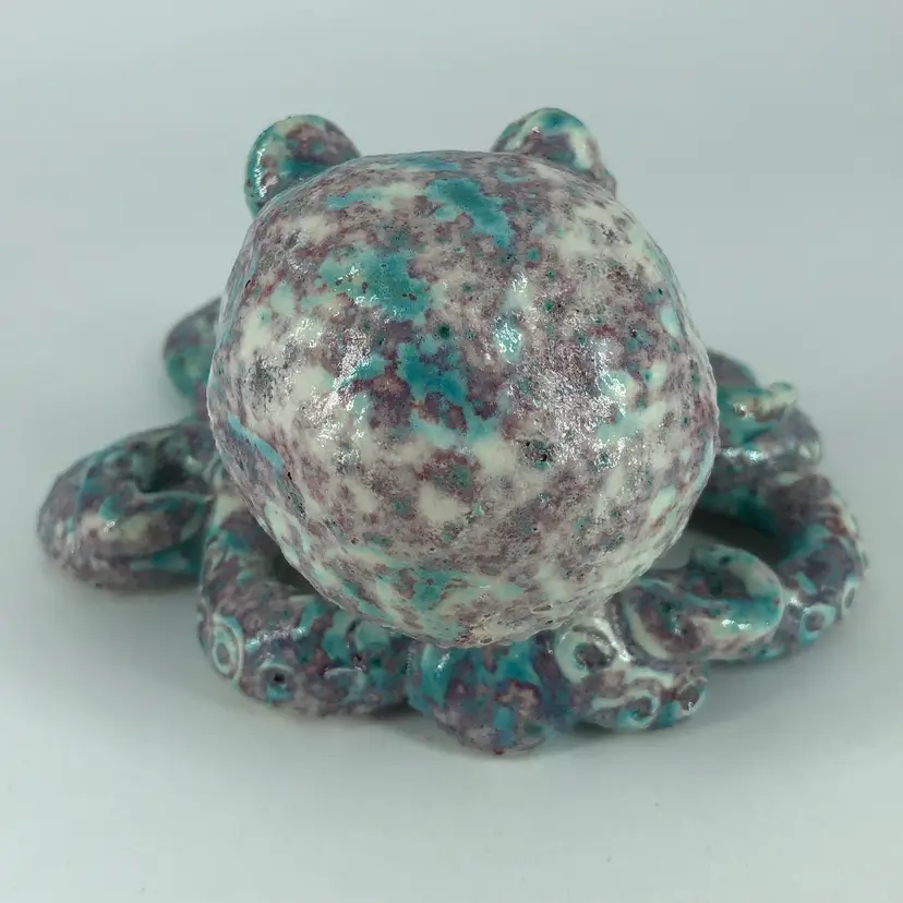 Hand-Crafted Pottery Blue & Purple Octopus Figurine Signed Bactin