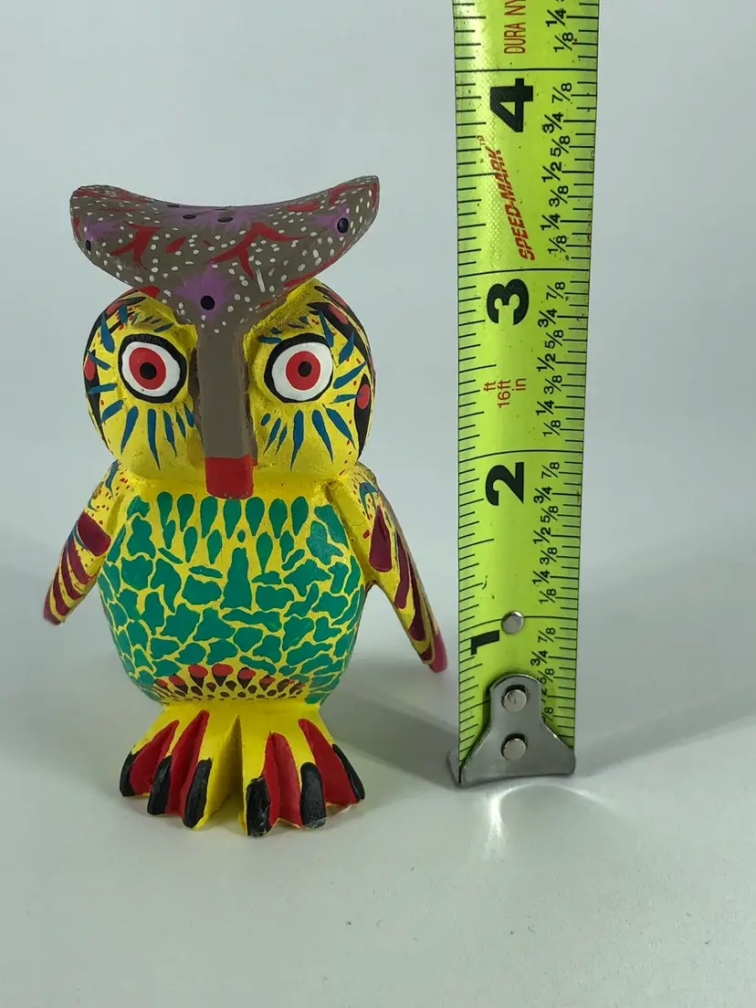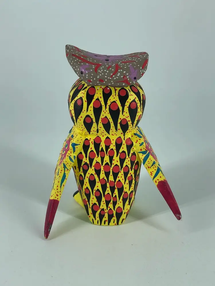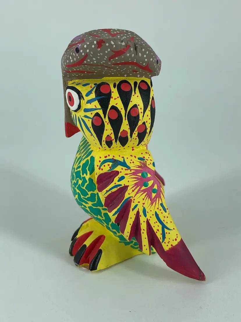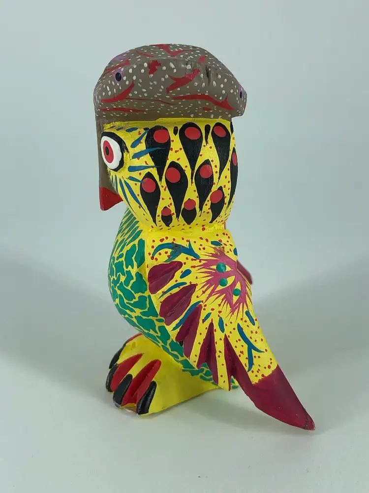 Hand-Crafted Signed Oaxaca Wooden Owl Figurine