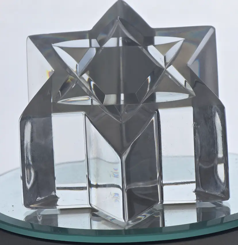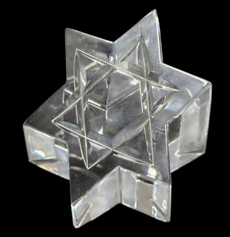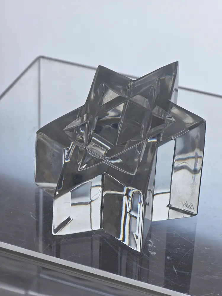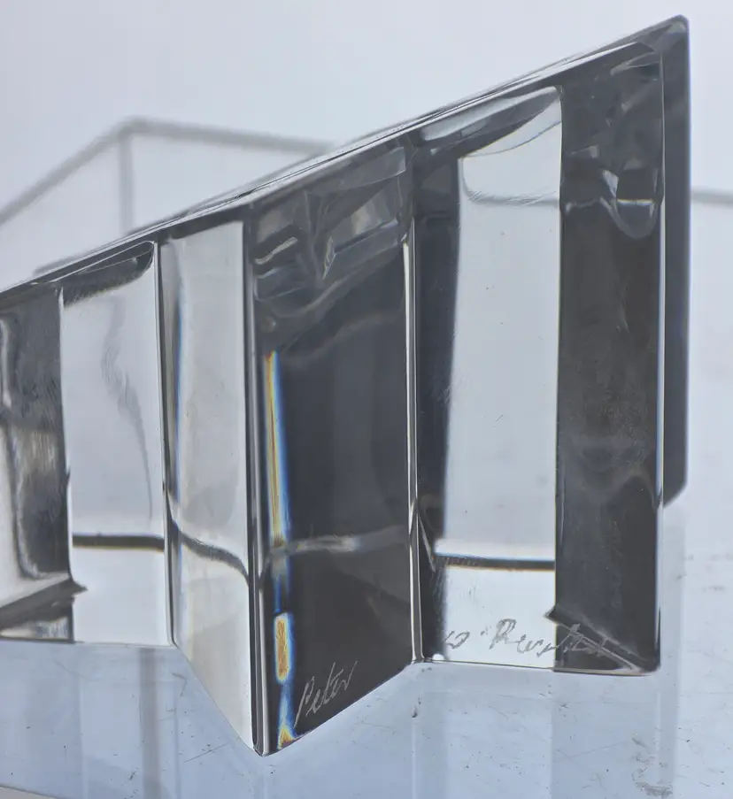 Hand crafted cut glass paperweight Signed by Peter O'Rourke 2" high 2.5" in diameter