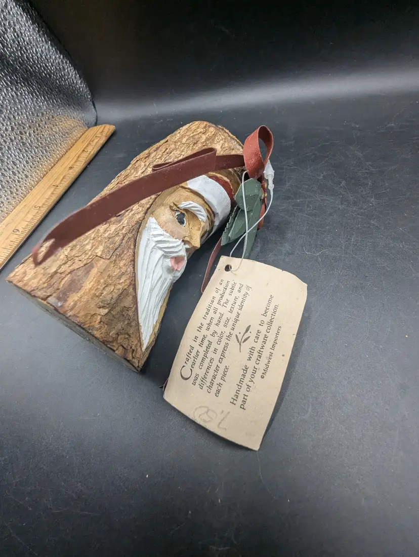 This is a lovely Hand Crafted Wood Santa Face Candle Taper Holder New With Tag. Please see all pictures for condition and measurements.