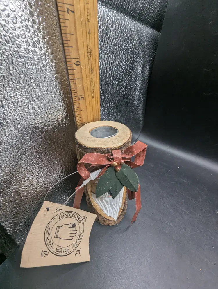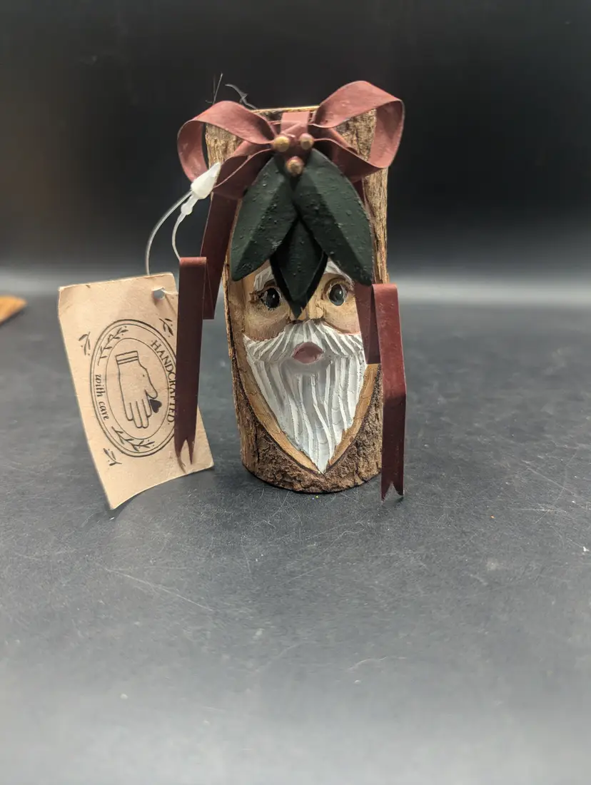 Hand Crafted Wood Santa Face Candle Taper Holder New With Tag