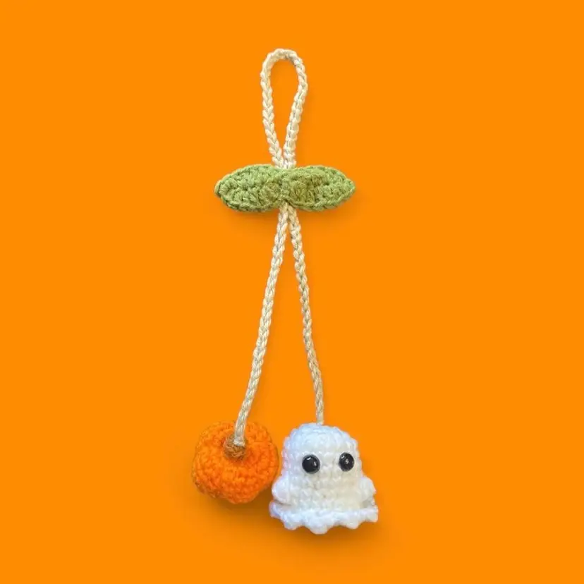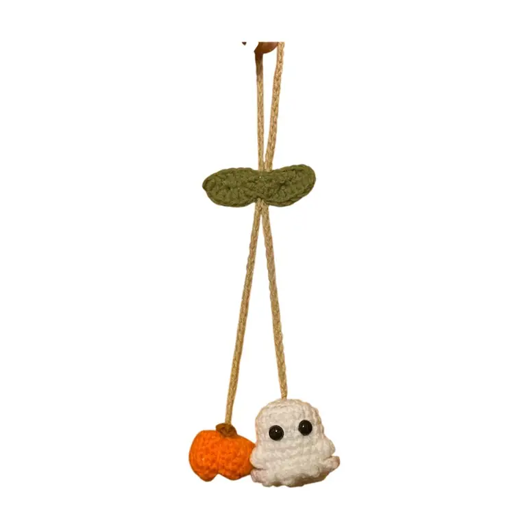 Hand Crocheted Halloween Car/Door Hanger Decor - Approximately 14 1/4 x 1 1/2 This is a super cute decor for Halloween. Leaf does adjust for loop to become bigger or smaller. Safety eyes are not recommended for children three years of age or younger.