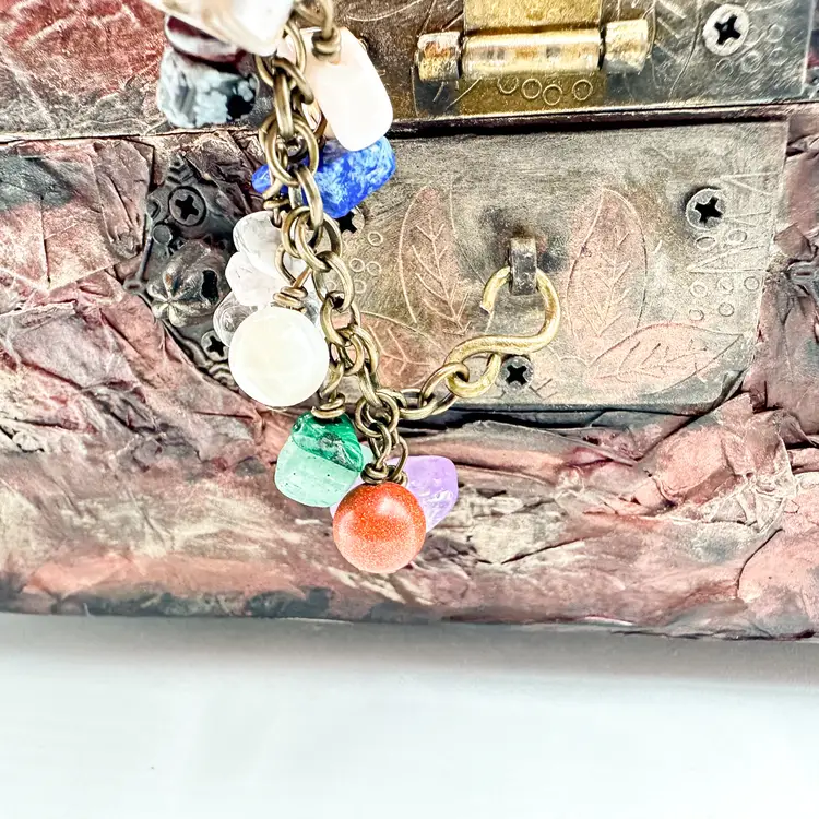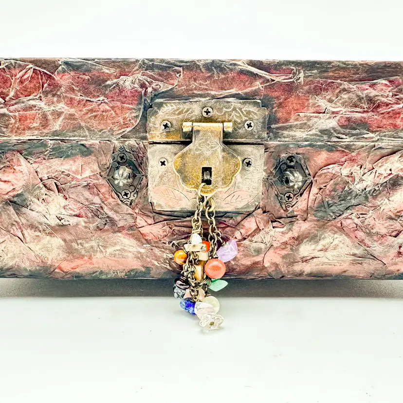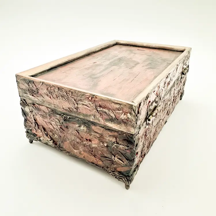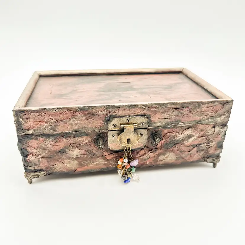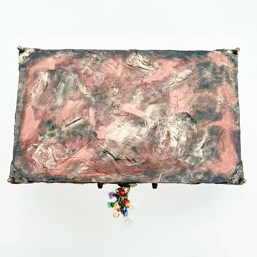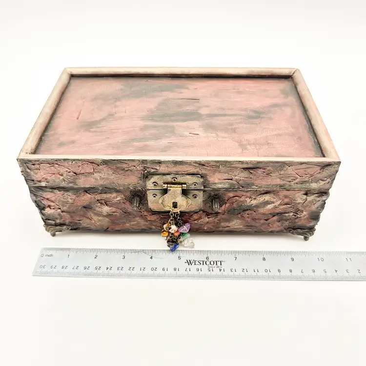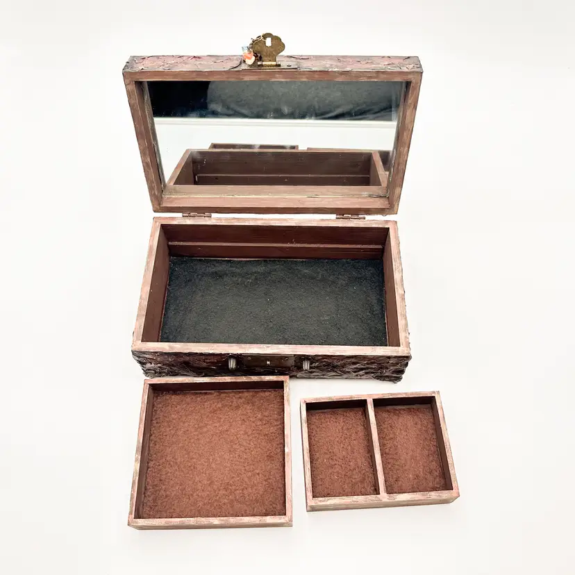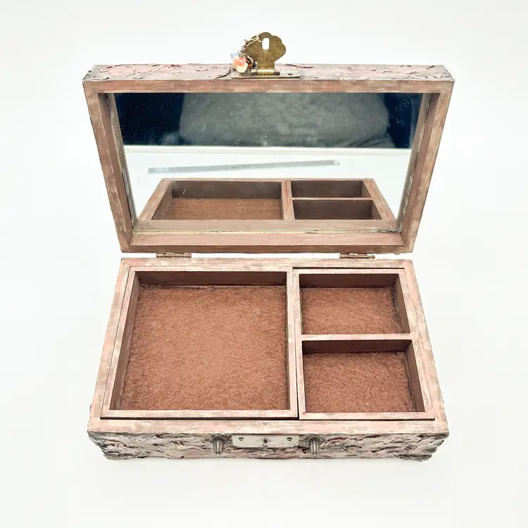 Wood craft jewelry box painted and finished by me Removable trays, felt lined, mirrored interior lid Perfect for jewelry, rock collections, or other small items Very good condition, see all photos