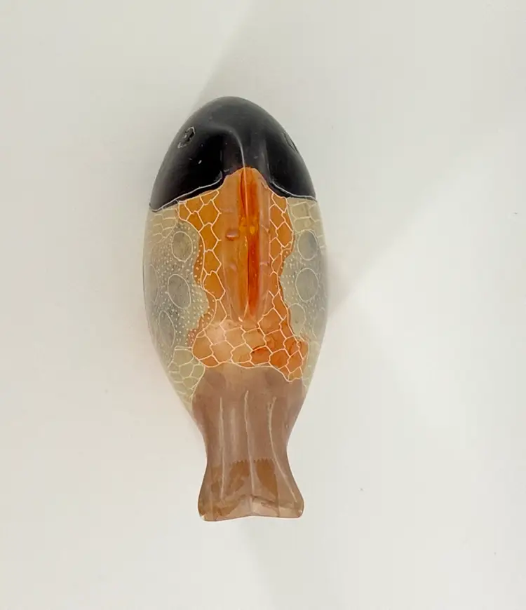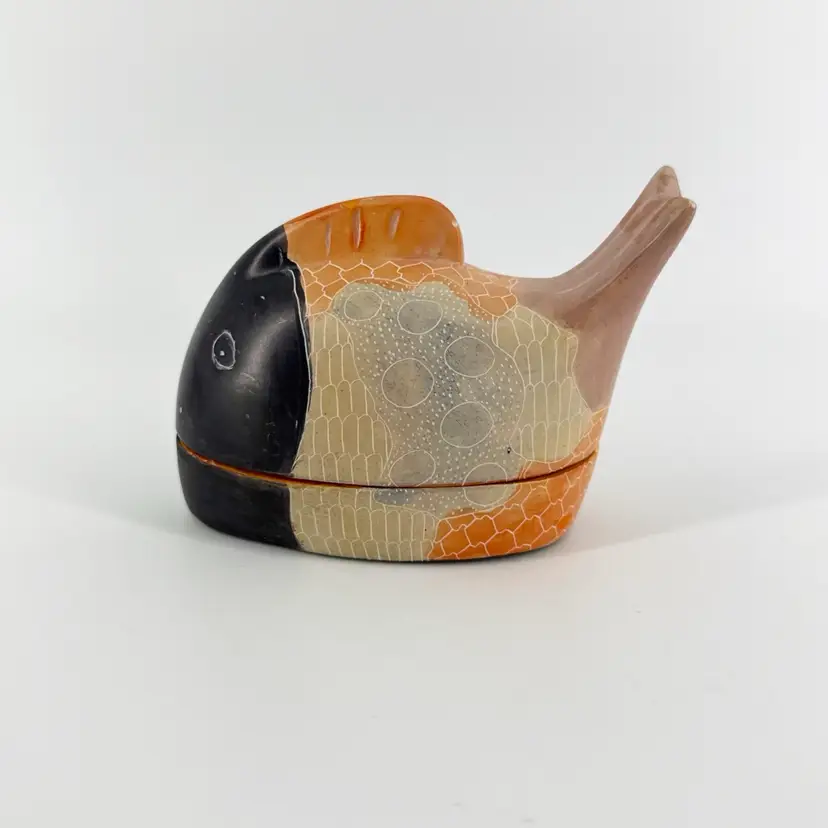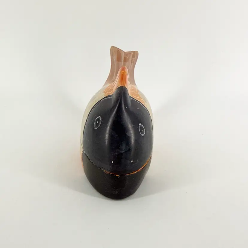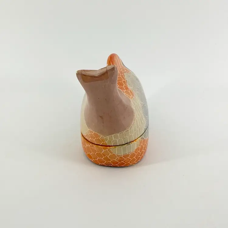 It is 3.5" tall and measures 4.25"x2.5". It is in excellent condition. There are no cracks, breaks, chips or repairs. (See photos).
