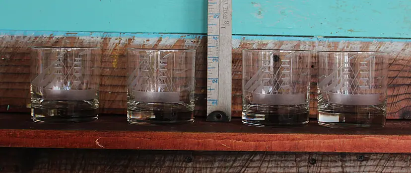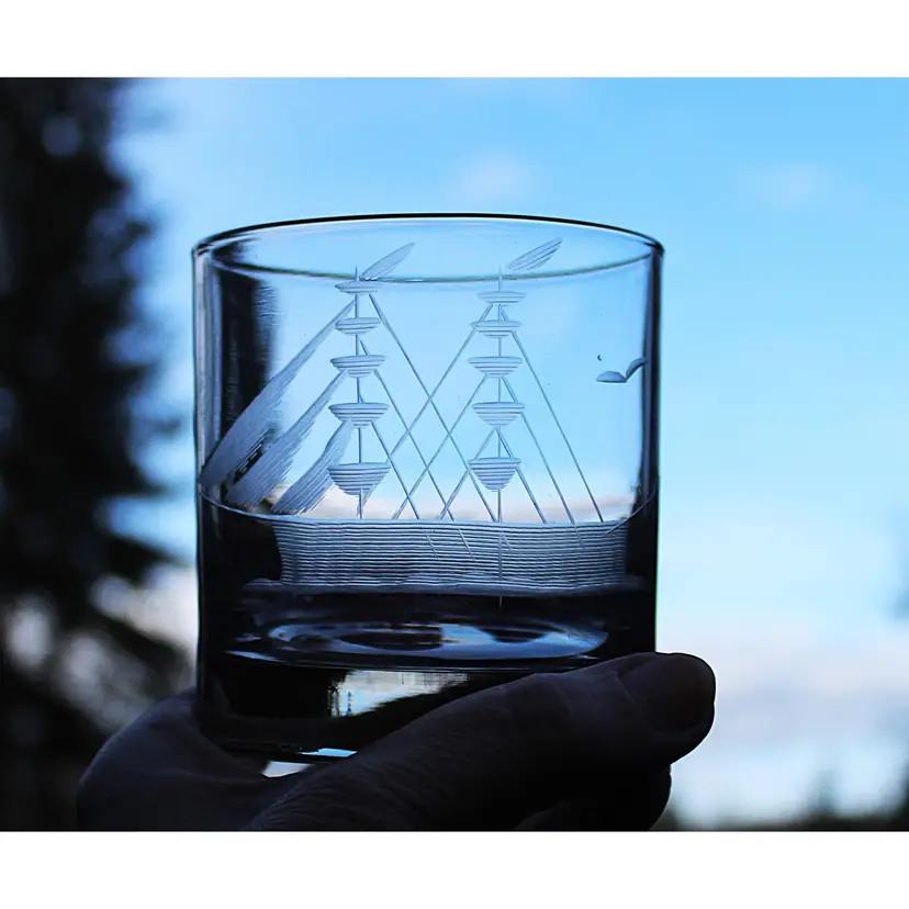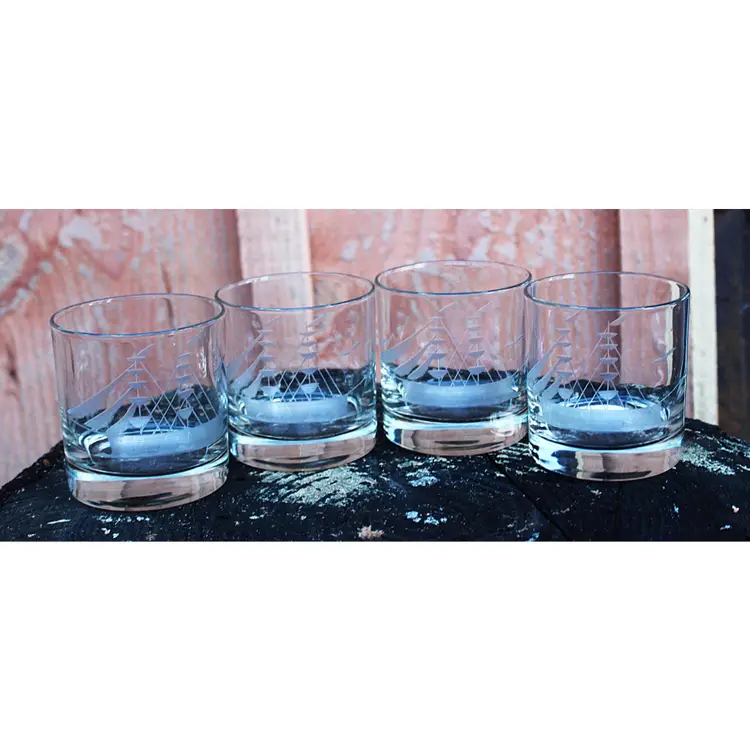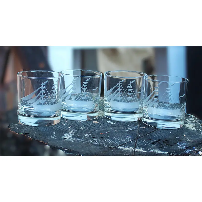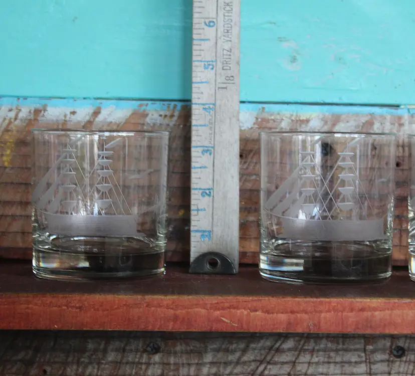 These charming lowball glasses are perfect for a day on the bay. Whether you enjoy whisky or another beverage, they are suitable for serving your drink on the rocks or not. The glasses are in excellent condition with no cracks, chips, or repairs. Dimensions are 3.12ʺW × 3.12ʺD × 3.5ʺH. Please examine all photos, as they are an essential part of the description.