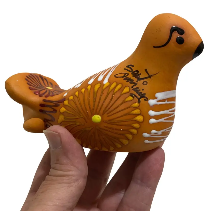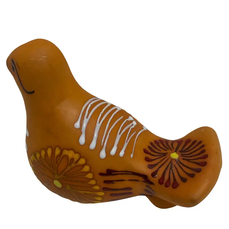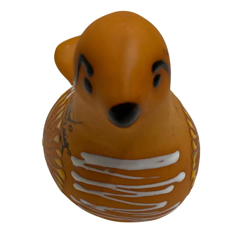 Hand Formed Native Clay Orange Pottery Artist Signed Bird 3” T X 4 1/3” Used pre owned no chips or cracks. Two small marks located on side of head. As seen in photos. Thanks and enjoy…