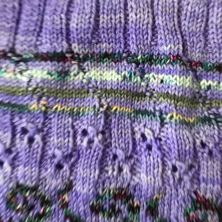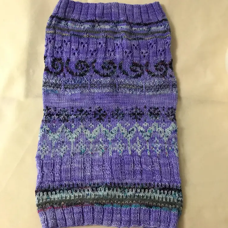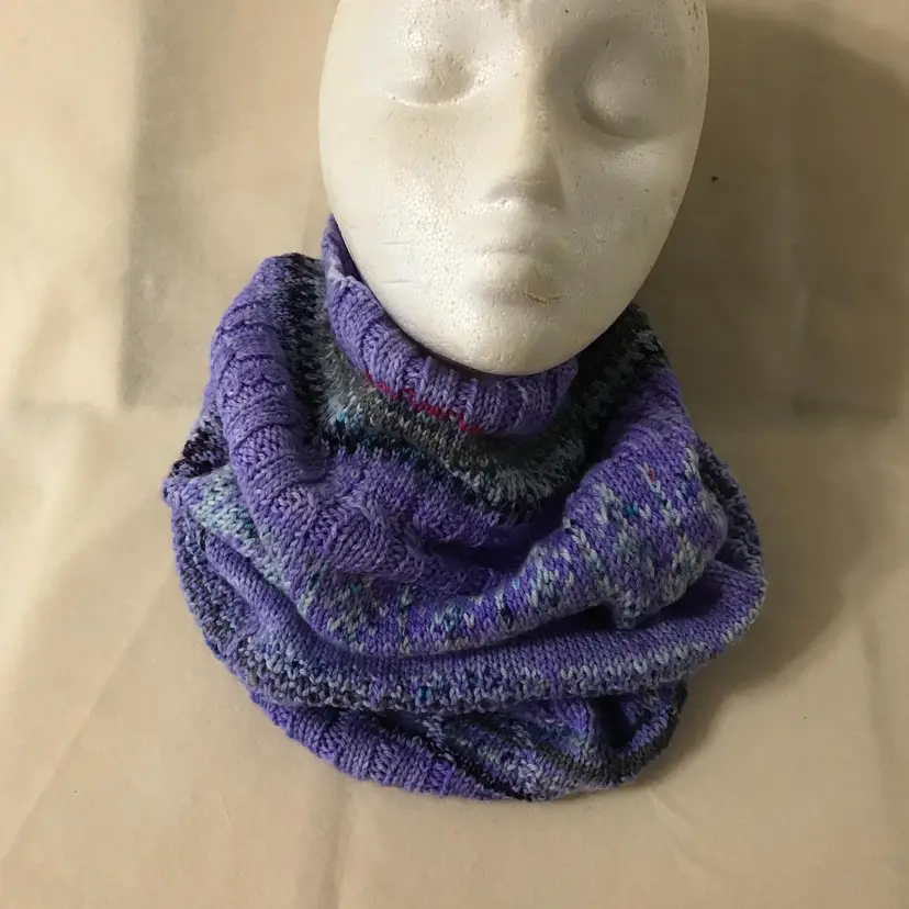 Made in a "12 Days of Knitmas 2022" knit a long, this cowl has ten days of different stitches and/or patterns with top and bottom ribbing. Constructed from 100% wool in fingering (sock) weight yarns, this cowl is a beautiful accent as well as warm.