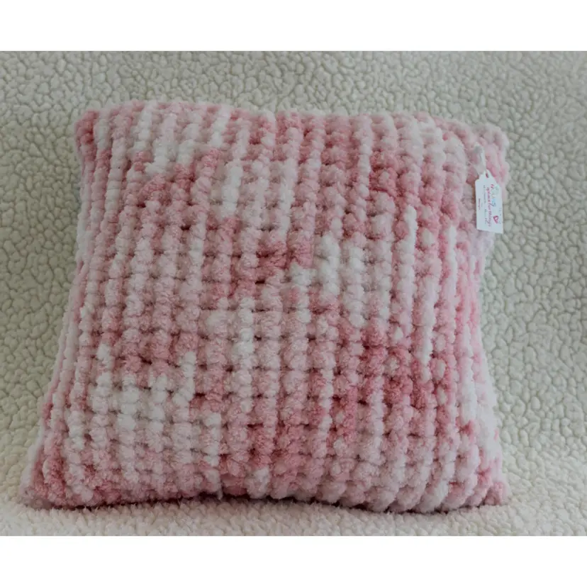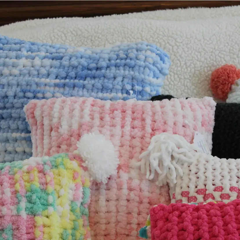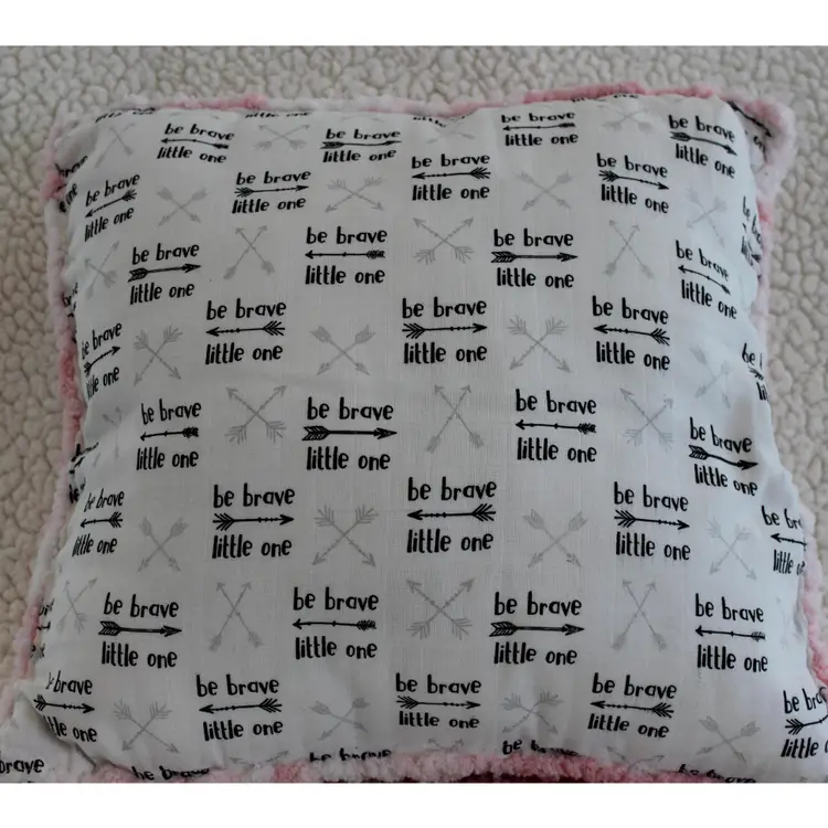 Hand Loom Knit Super Soft Pillow Hand Knit Hand Sewn Reversible Cotton Fabric Back "Be Brave Little One". Decorative Use Measures approximately 16x16 Square