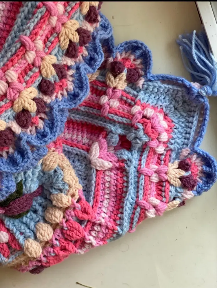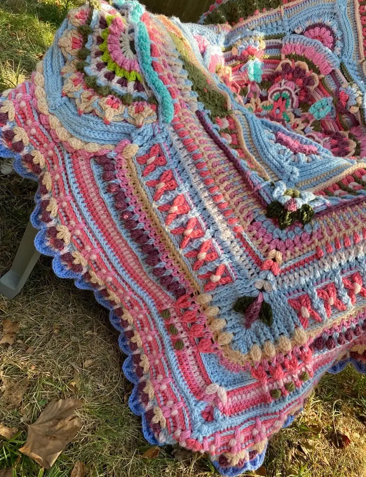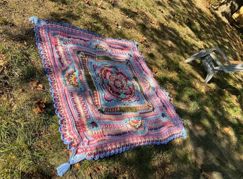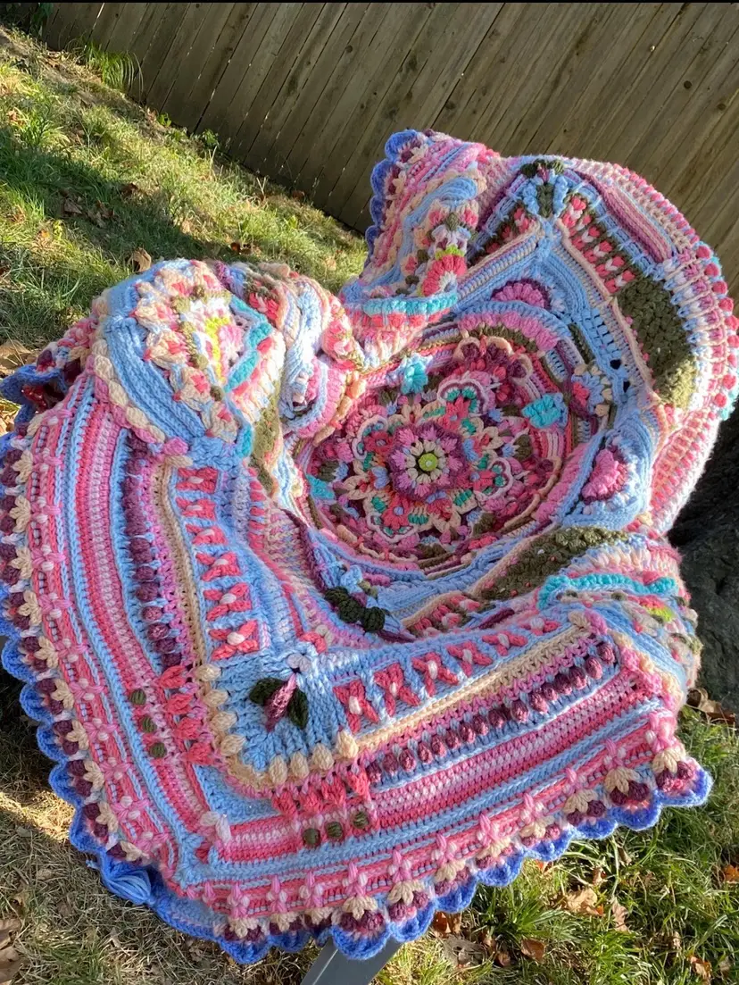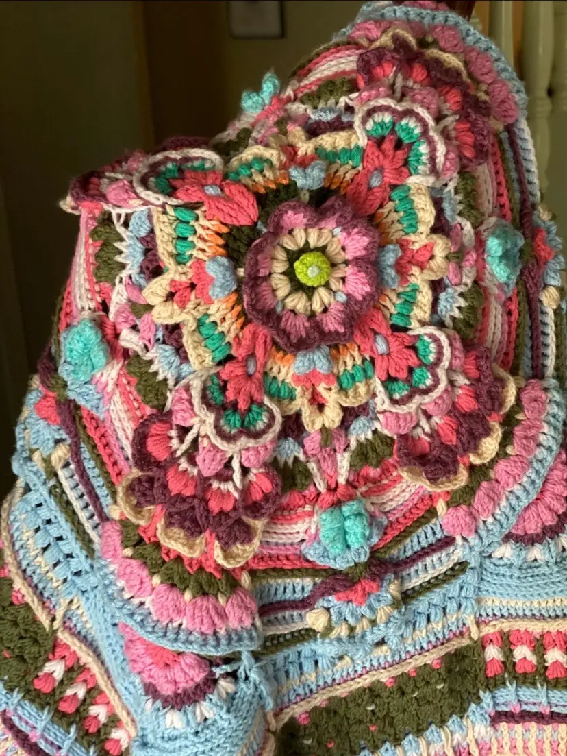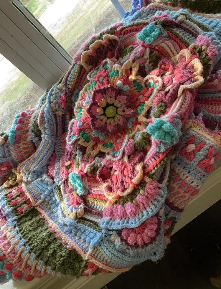 and-Crocheted Floral Throw – 100% Acrylic 🌸✨
