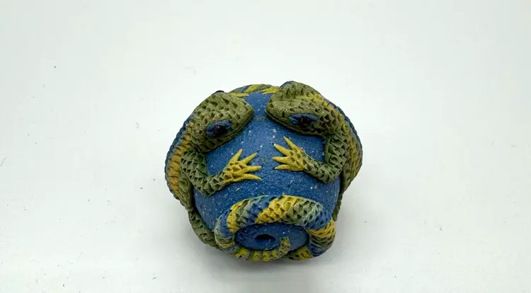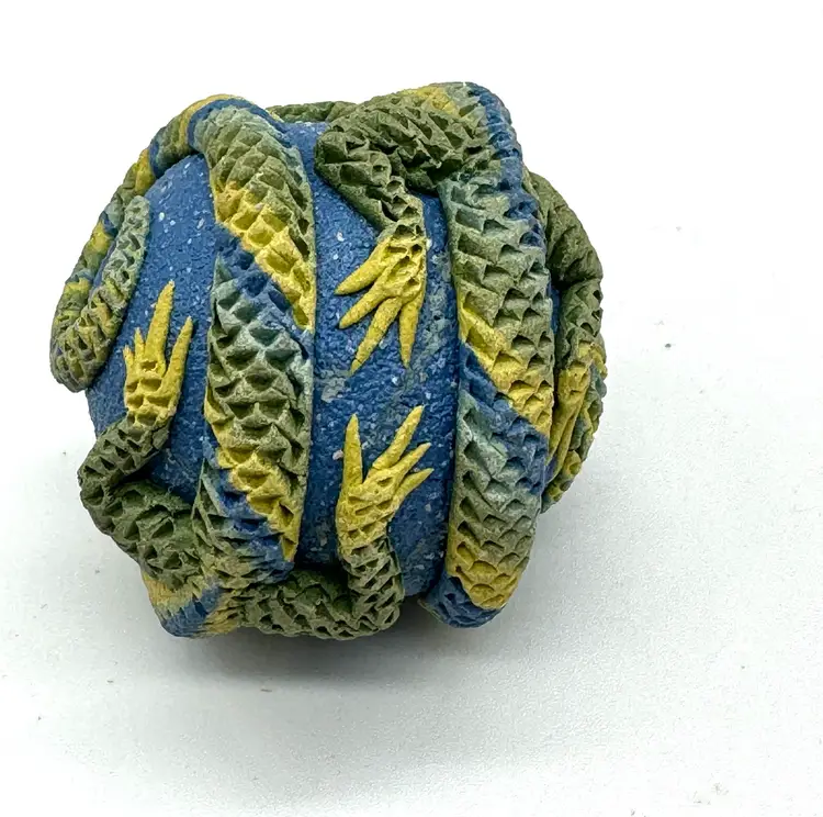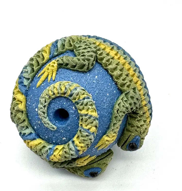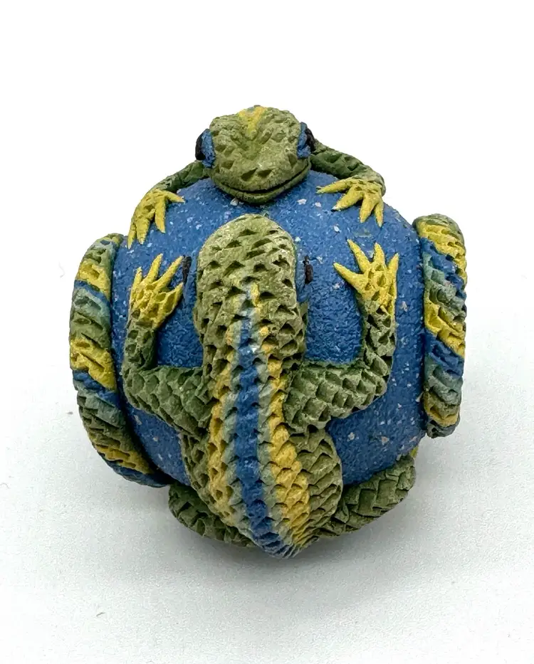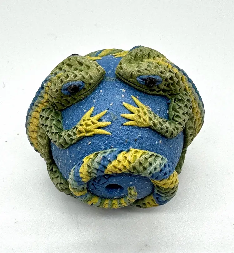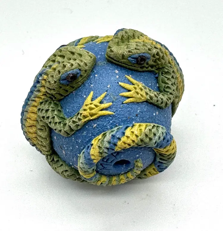 Clearing out some of my supplies, and this lizard ceramic bead is so cool. The bead is signed but I purchased so long ago I can’t remember the artist’s name. The bead is large and measures 1.5” by 1.25”.
