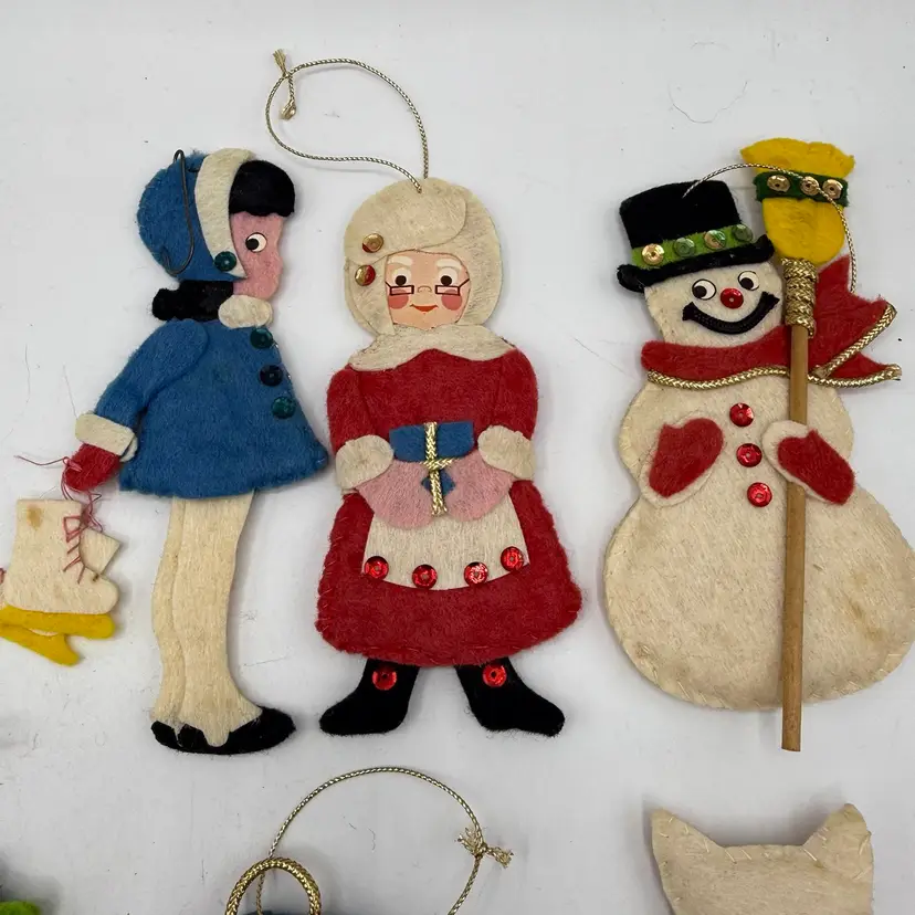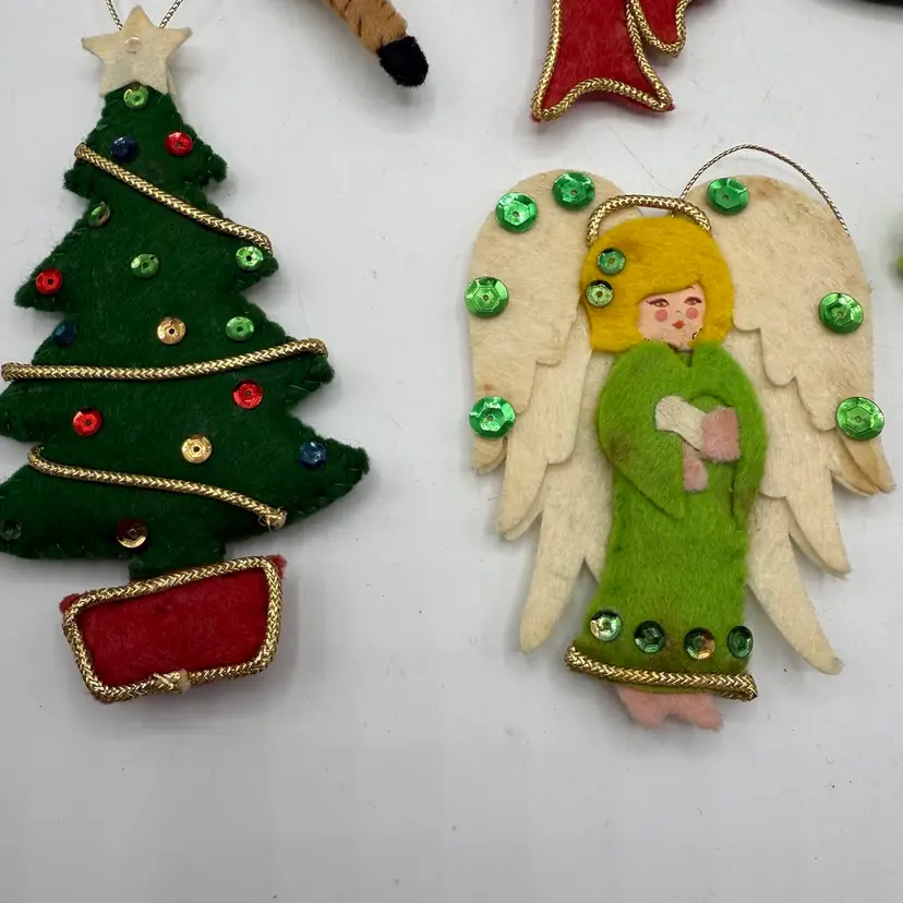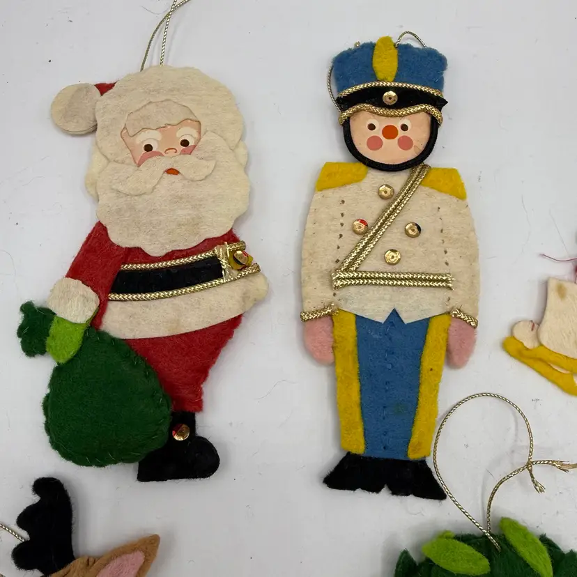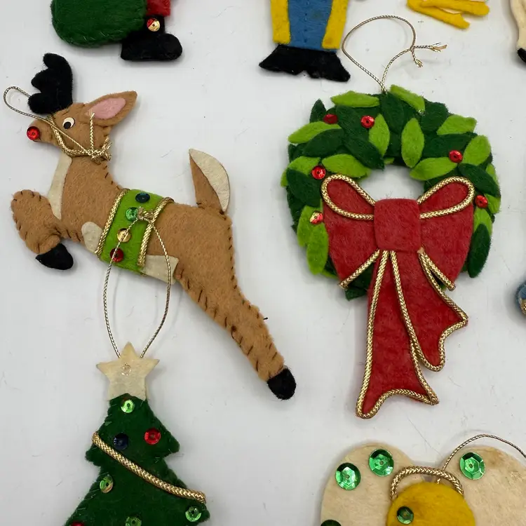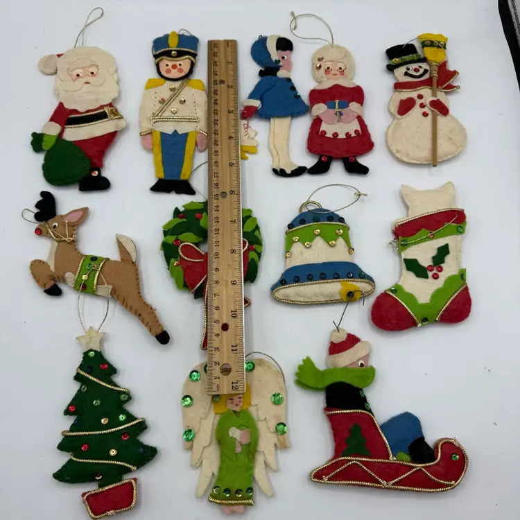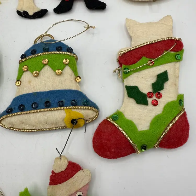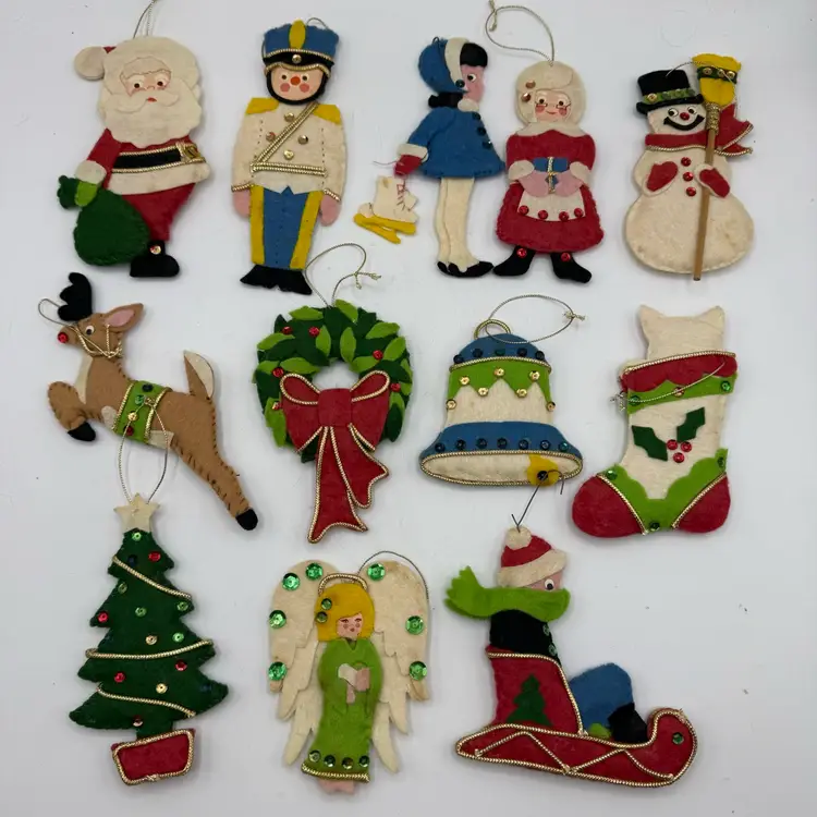 Hand Made Vintage Felt Christmas Ornaments Set Of 12