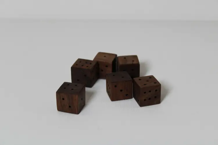 Set of 6 walnut dice.