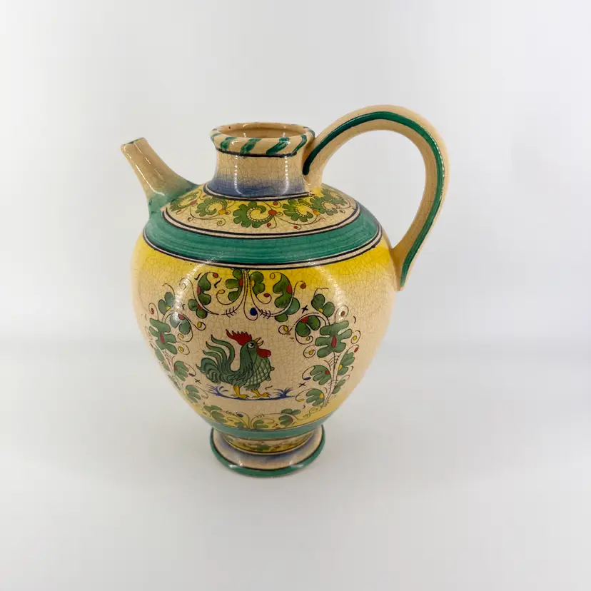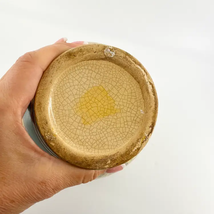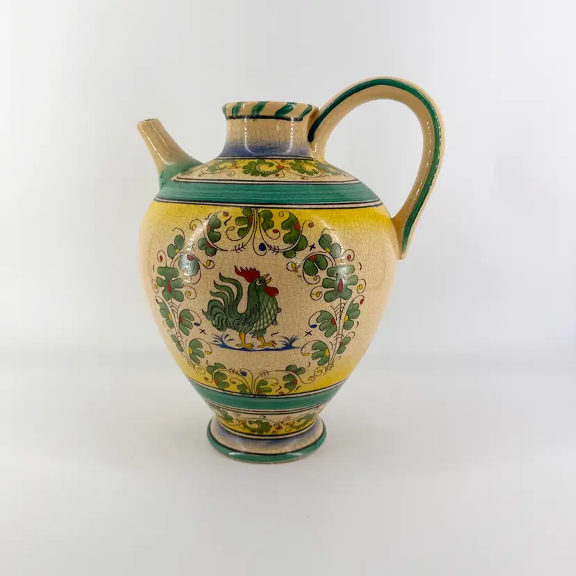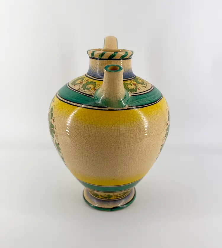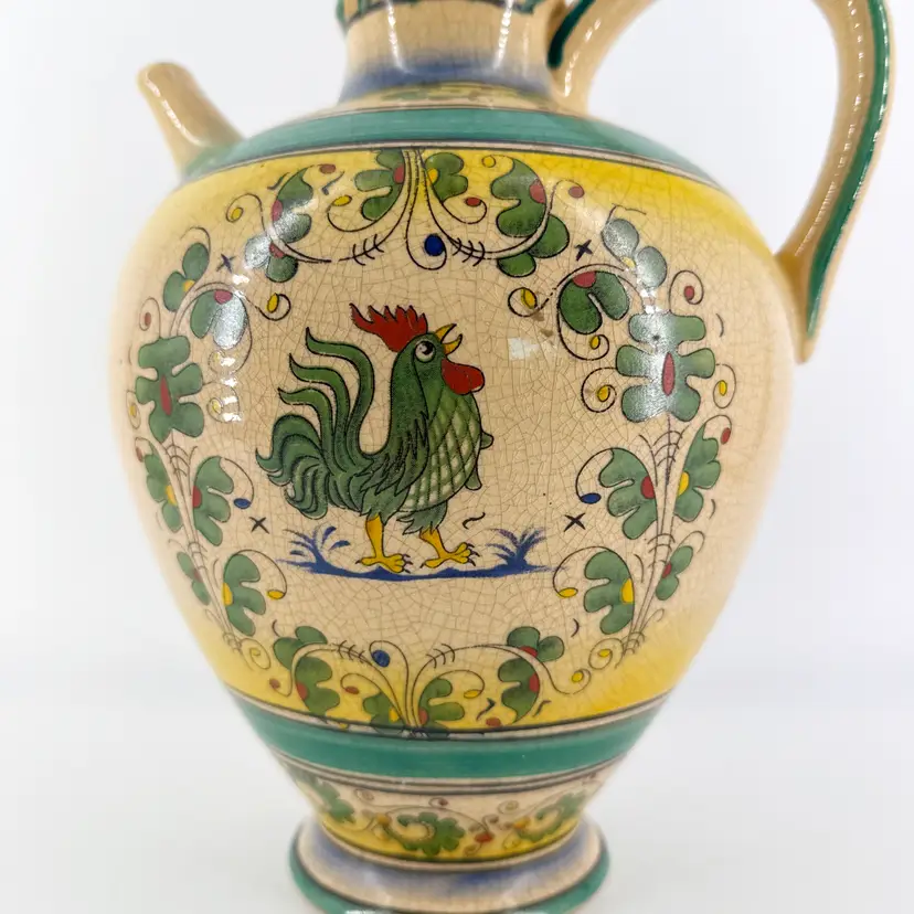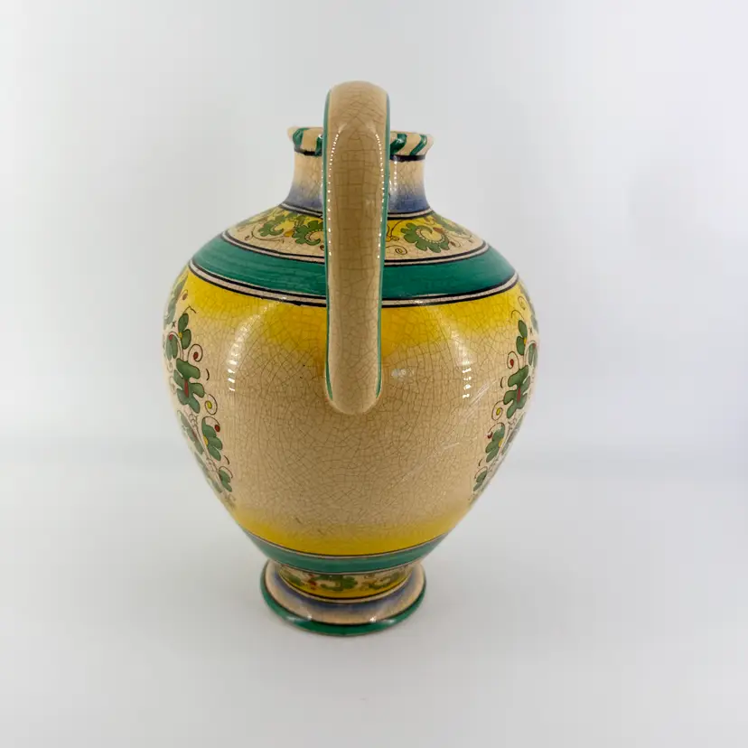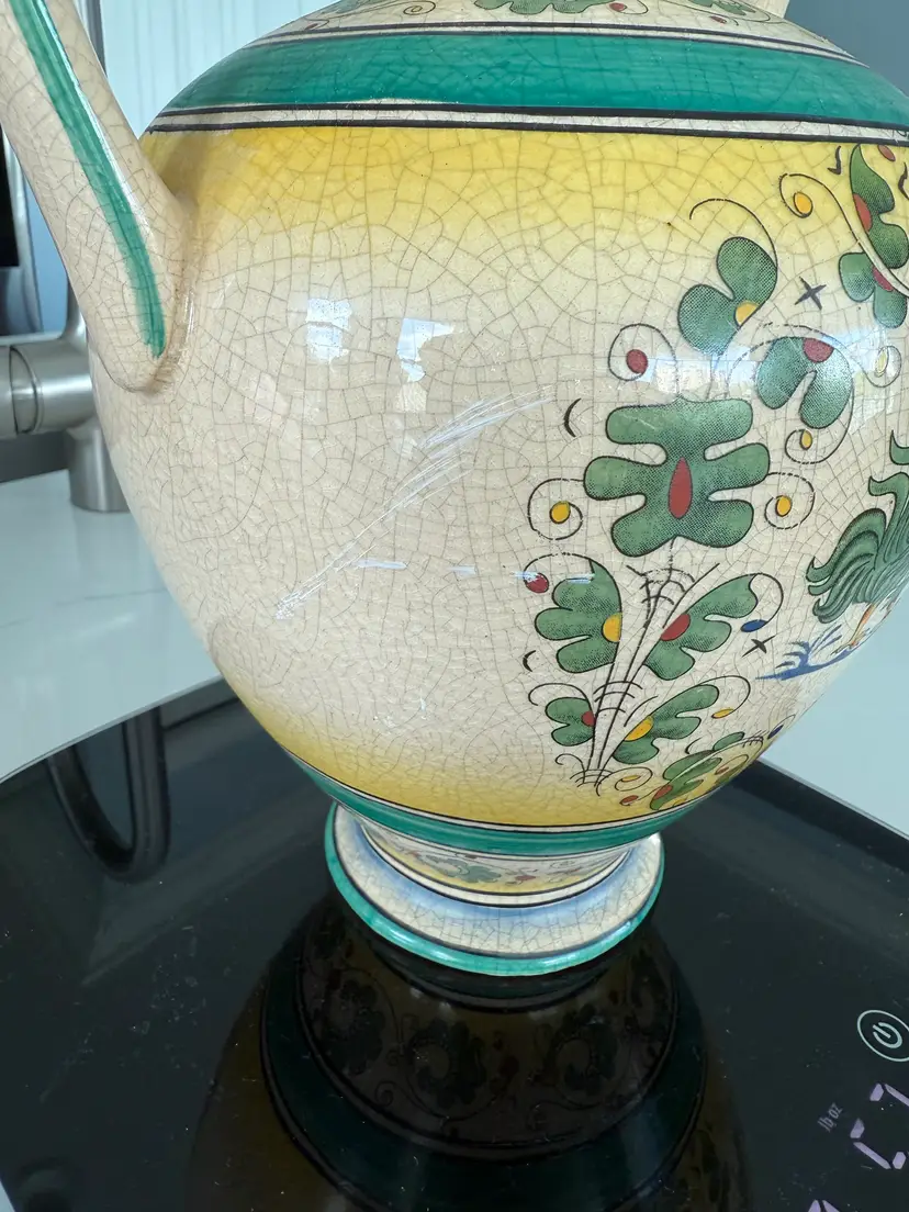 It is 10.5" tall and measures 9"x7.5". It is in good condition. There are no cracks, breaks, chips or repairs. One side has some scratching. (See photos)