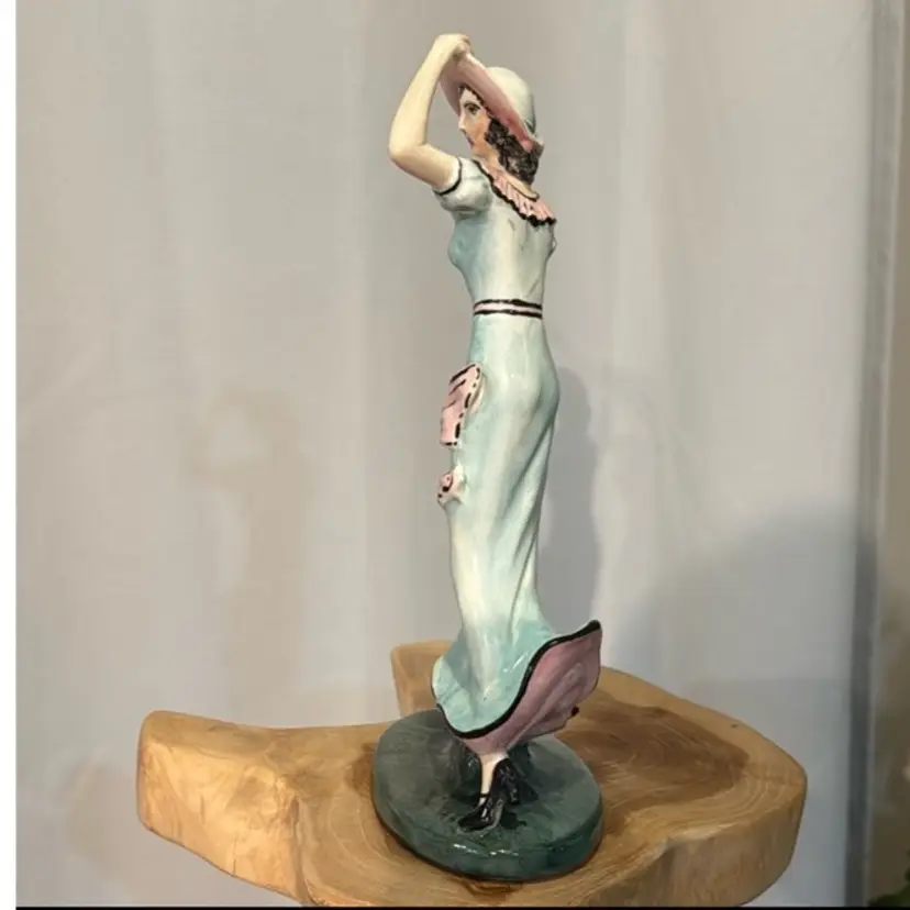 Beautiful 9 inch tall hand, painted female statue. It looks like she’s caught in the wind. No chips or cracks.