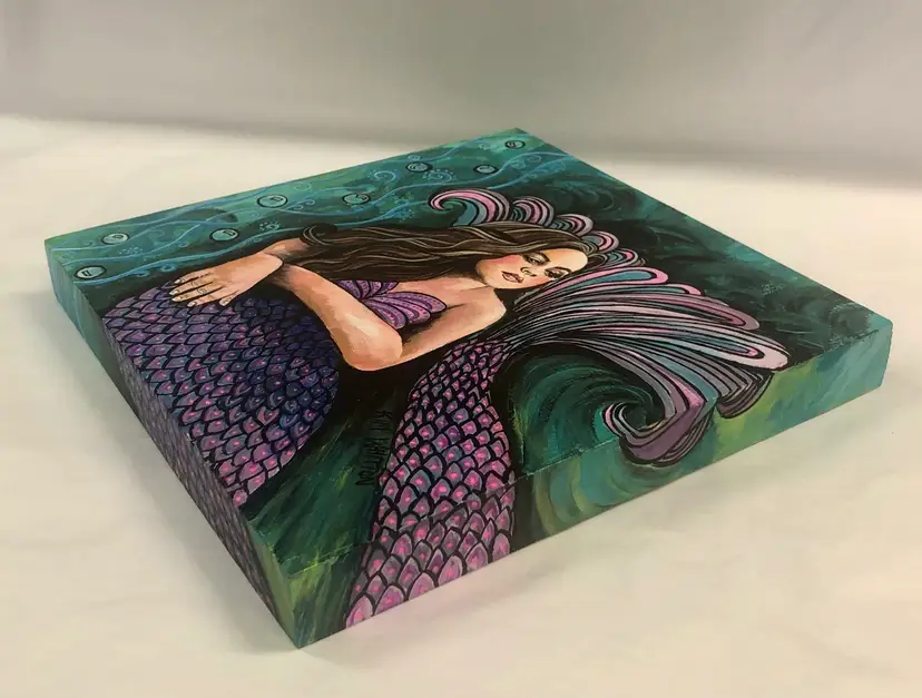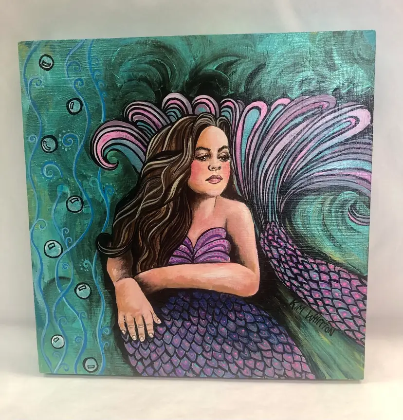 One of a Kind Acrylic Painting by me, the artist (Kim Whitton). The wood panel that it is painted on measures 8” x 8” x 1”. There is no need to frame as I have painted the sides as well.