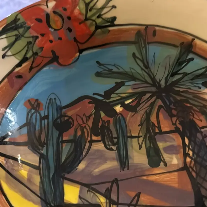 Hand-Painted and Hand-Signed Kenworth 1998 World’s Best Palm Springs, California Studio Pottery Large Bowl - 11.5” in diameter