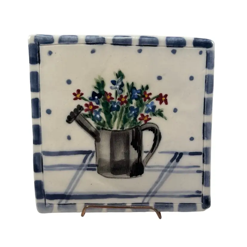 Approximately 4.25” square. No chips or cracks. Signed and stamped on the back.