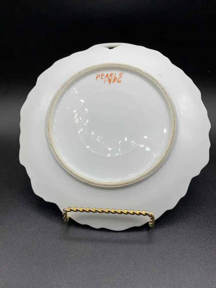 This stunning plate is a one-of-a-kind piece, perfect for any Christmas collector. Handmade and painted with exquisite detail, this plate features beautiful poinsettias and is signed by the artist Pearle in 1956. The plate is made of high-quality bone china, ensuring its longevity and beauty for years to come.