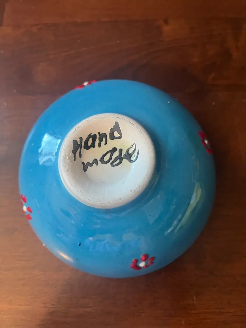 Modern Turkish ceramics continue this artistic legacy, with many artisans producing decorative bowls, plates, and tiles in traditional styles. While not antique, these hand-painted items are popular souvenirs and decorative objects, often featuring bold colors and intricate patterns that evoke the beauty of historical Turkish art. The style seen in the image, with its bright blue base, floral motifs, and Greek key border, is characteristic of contemporary Turkish ceramic artistry.