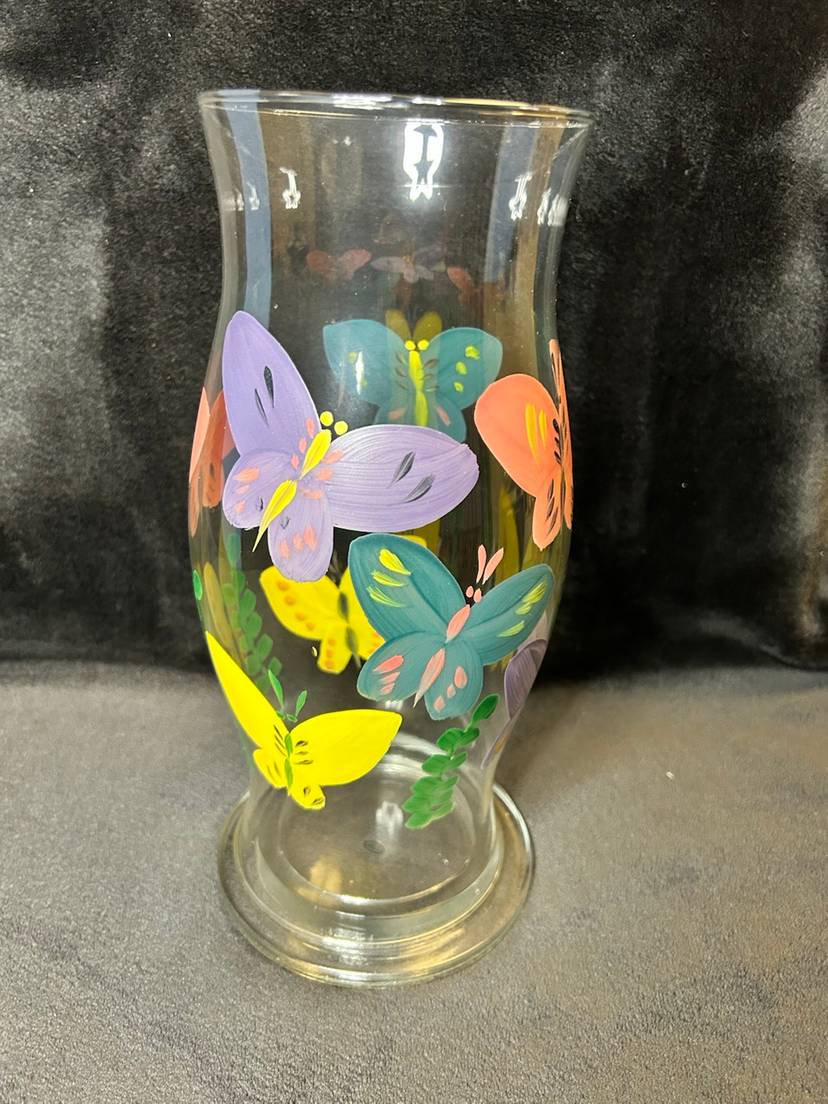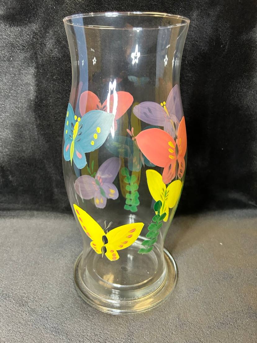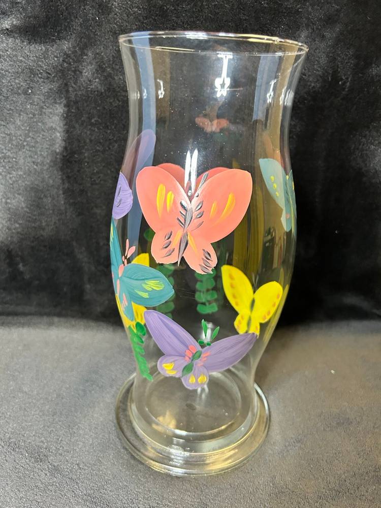 Hand Painted Butterfly Glass Hurricane W/Base