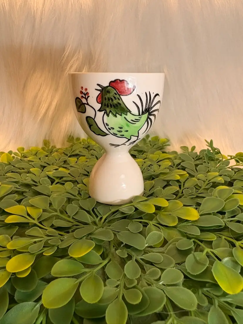 Hand Painted Ceramic Egg Cup w/Rooster by ASCON Made in Japan