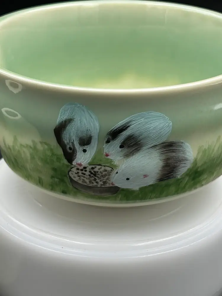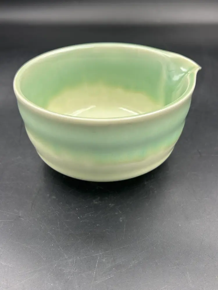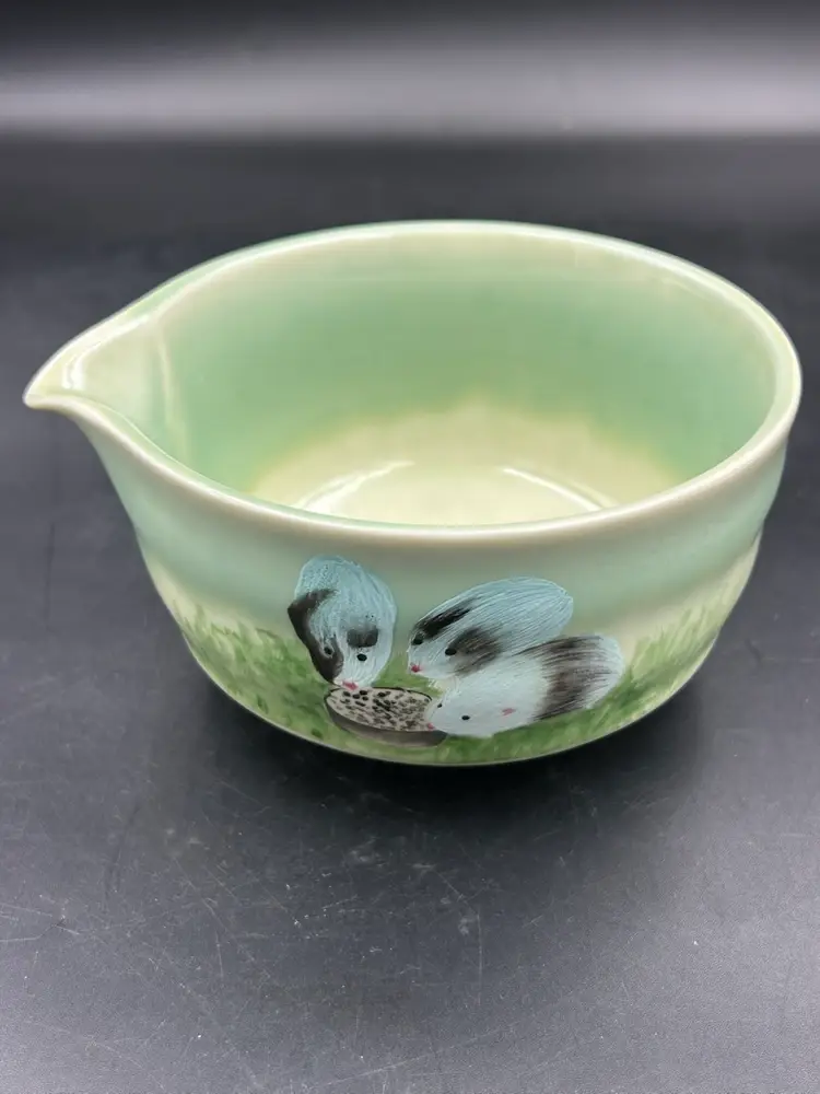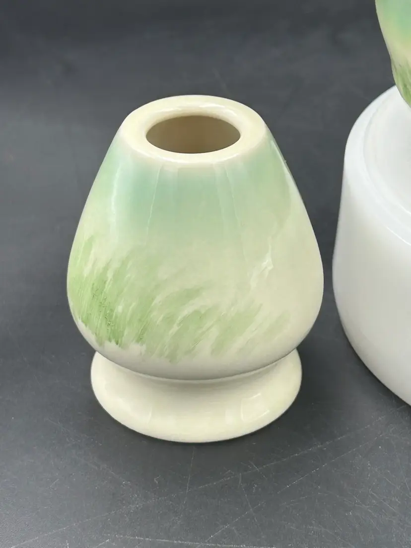 Perfect condition. Bowl – 5.5 W.X 2.75 H. Whisk holder – 2.75 H.X 2.25 W