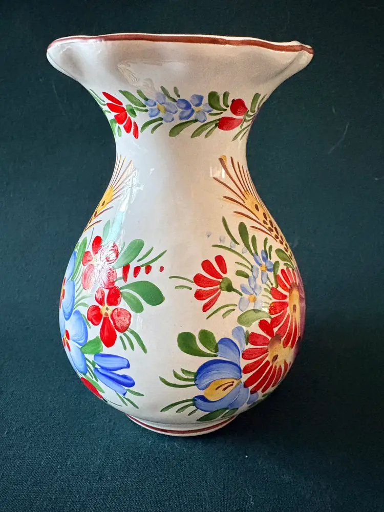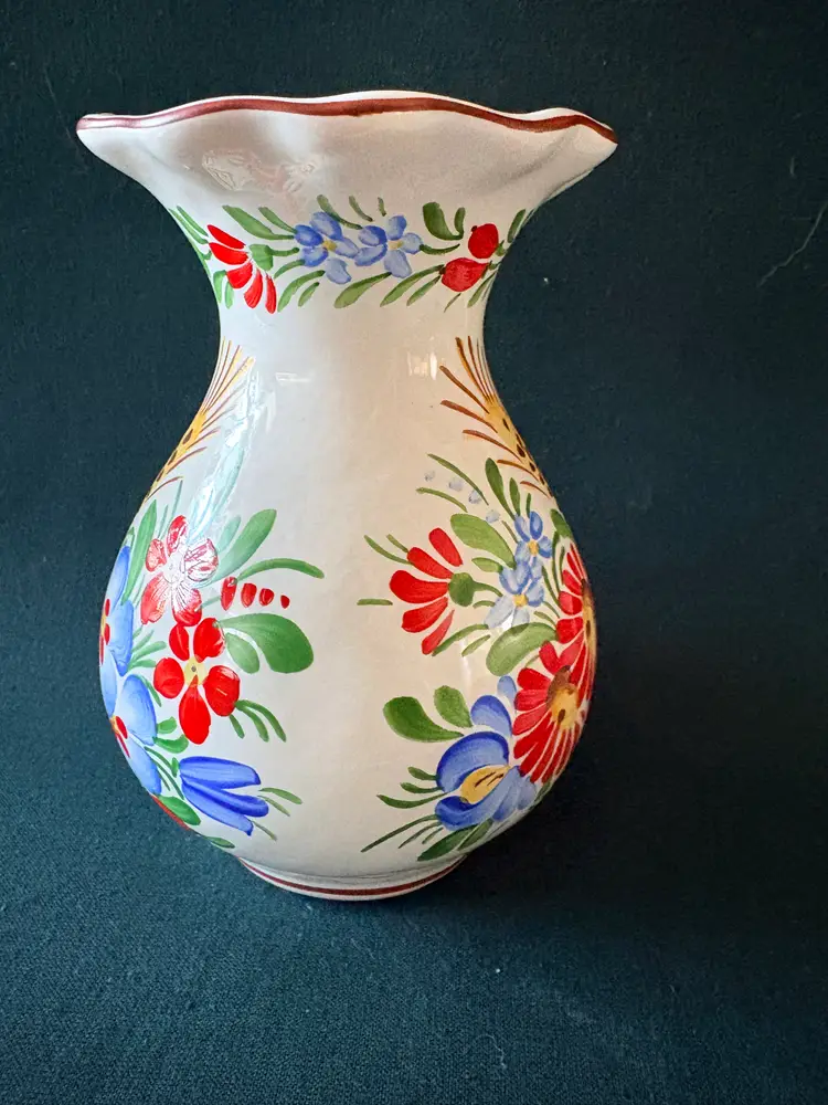 Brighten up any room with this vibrant hand-painted traditional Czech floral vase. Perfect for showcasing your favorite blooms or as a standalone piece of art.