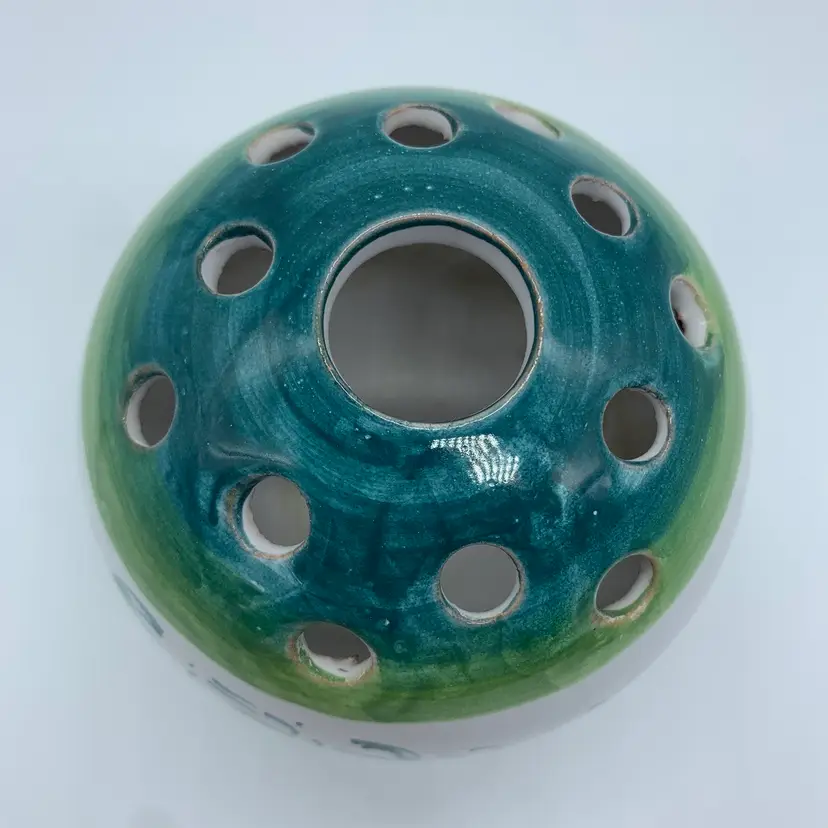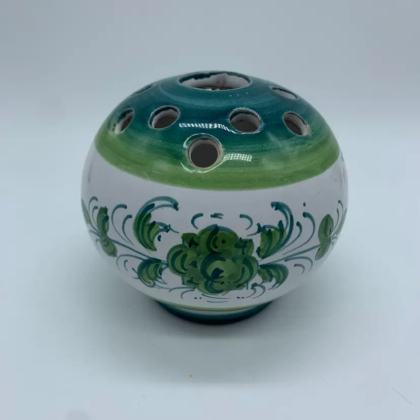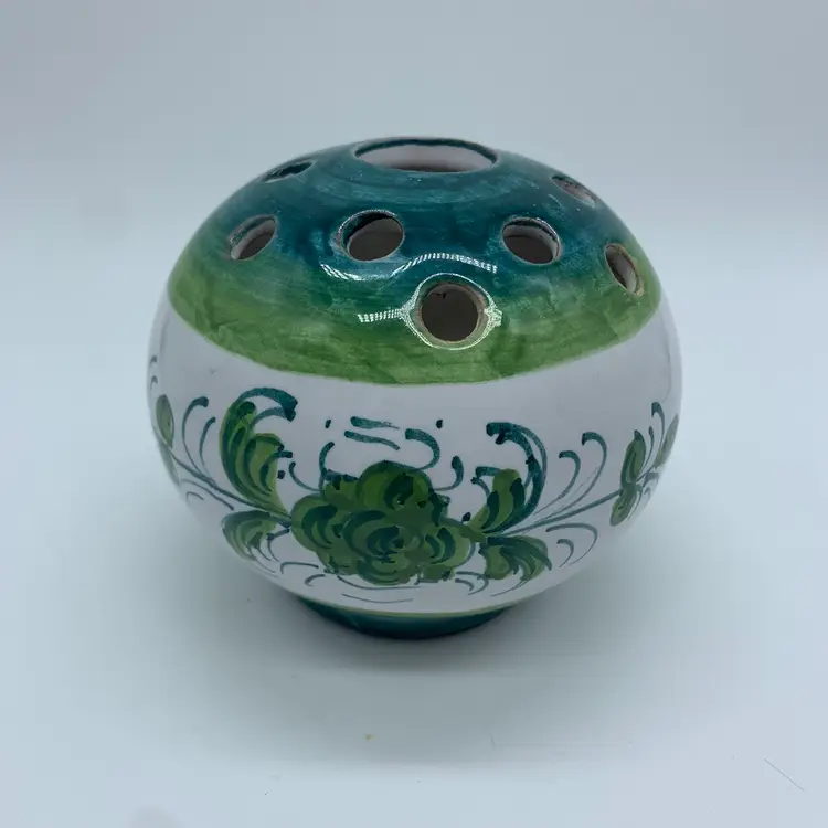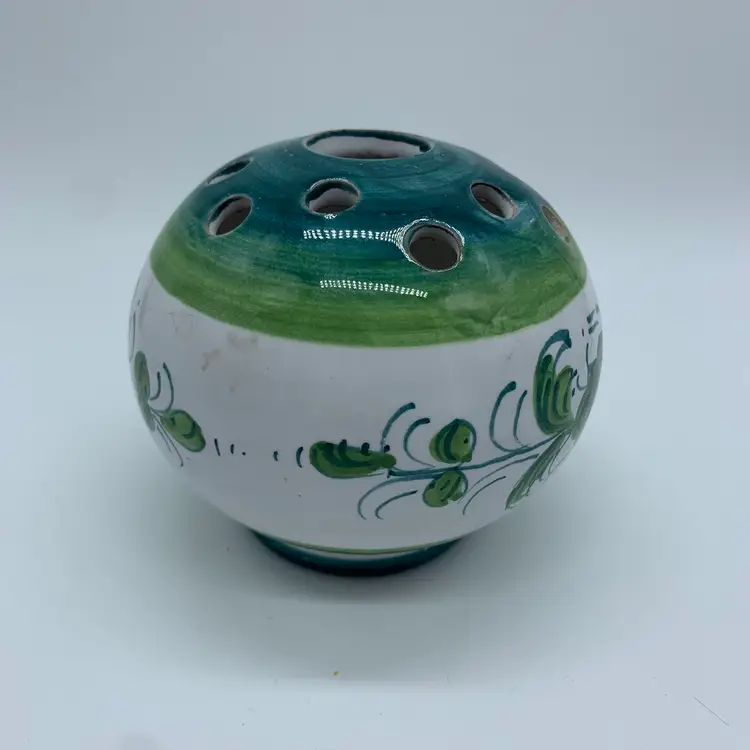This beautiful floral frog stands at approximately 3.75 in tall and 4.25 in wide. There are no chips or cracks.