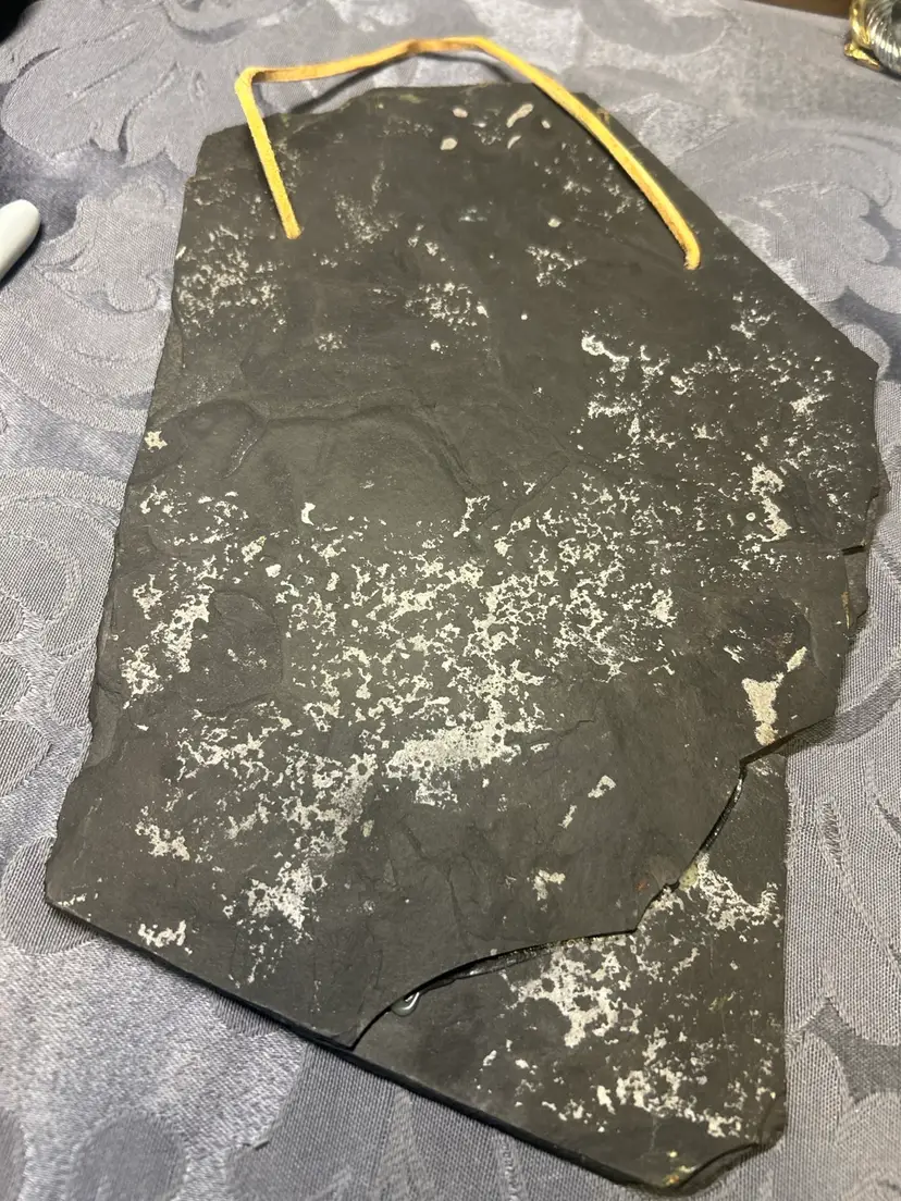 Details • Material: Natural slate • Technique: Hand painted • Dimensions: Approximately 10” tall x 6.5” wide • Condition: Good vintage condition; natural slate variations, edge irregularities, and wear to back consistent with age and material; painting remains vibrant • Era: Late 20th century (likely 1980s–1990s)