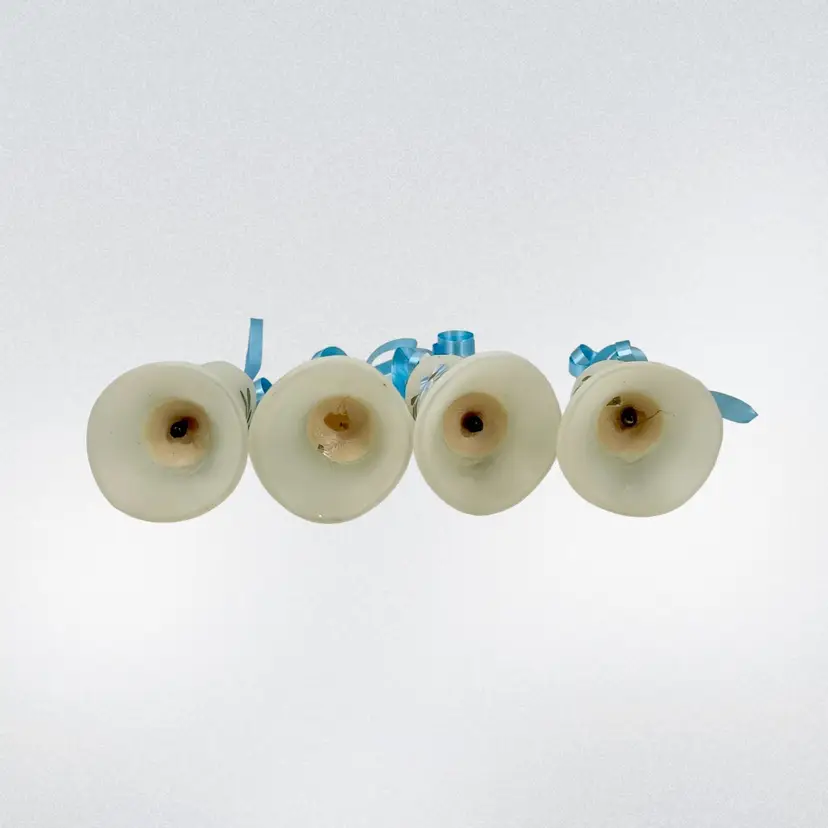 Condition: Dark marks that appear to be rub marks, would not come off with water. One of the beads (Bell) fell off, still have the bead.