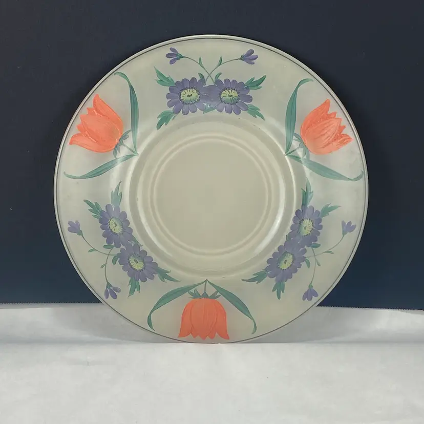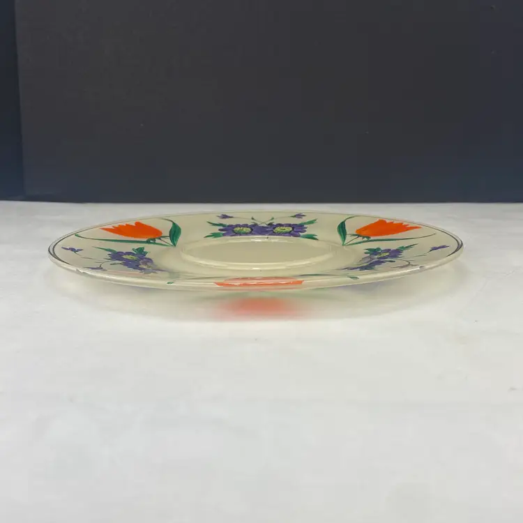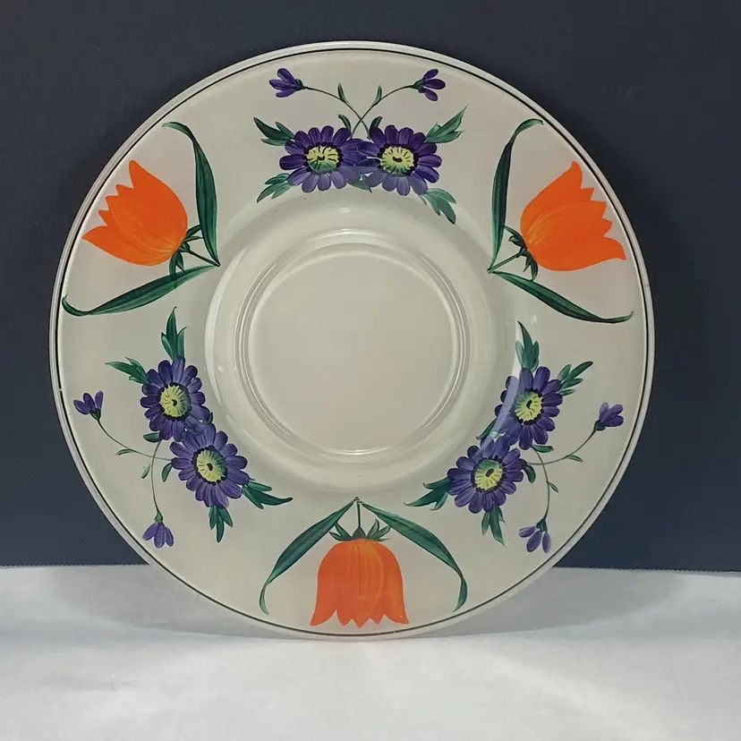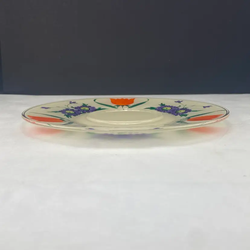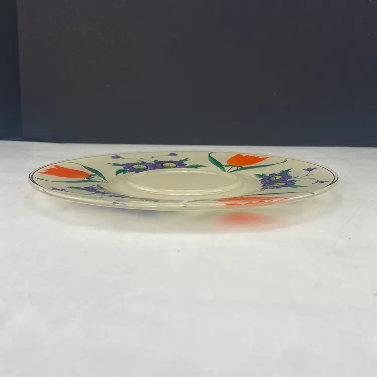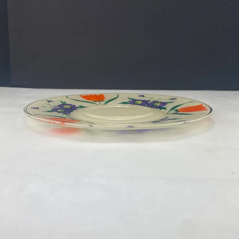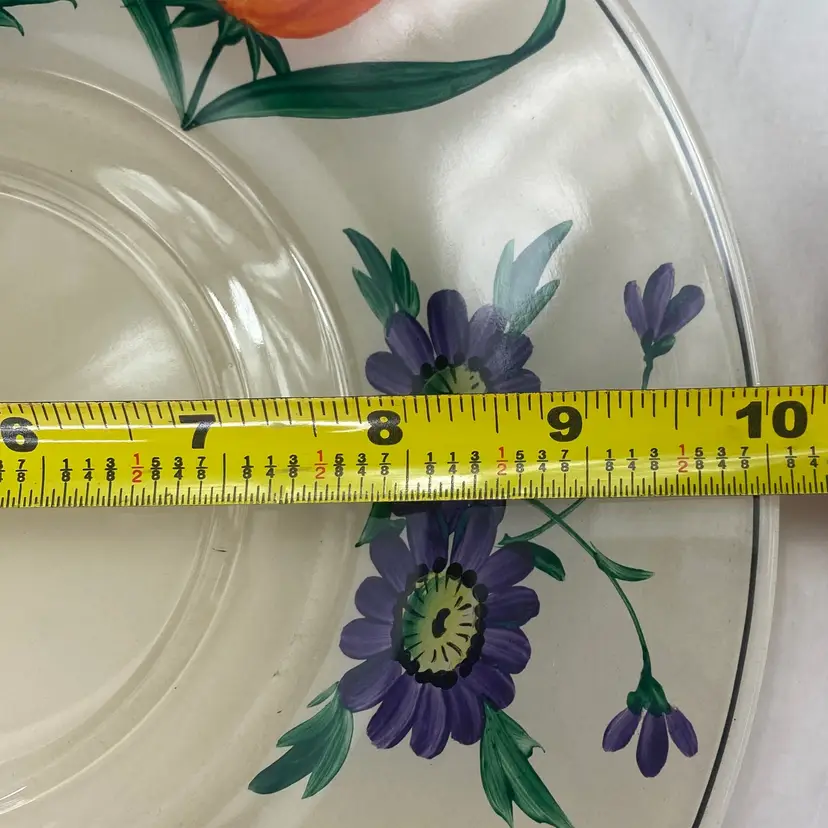 Hand Painted Glass Serving Plate Orange Purple Flowers
