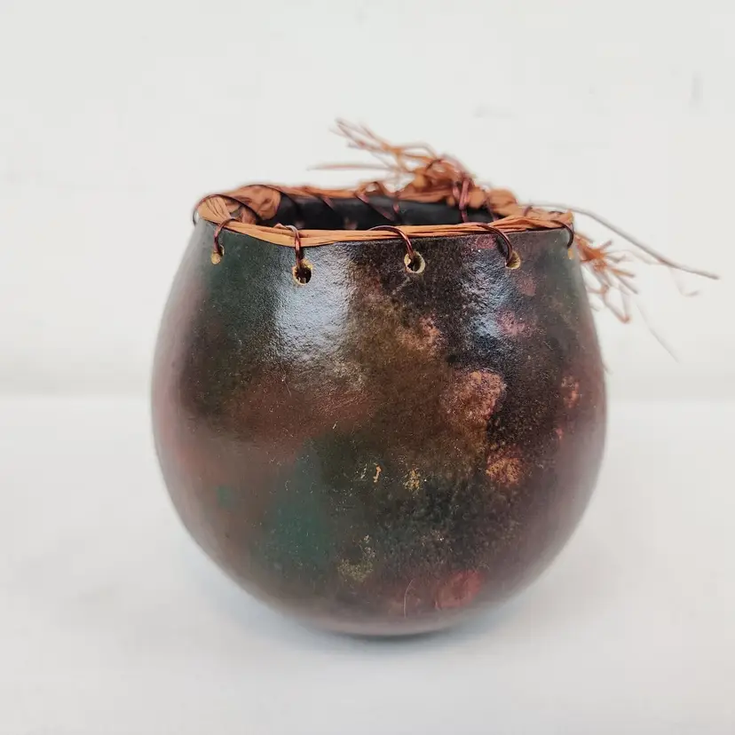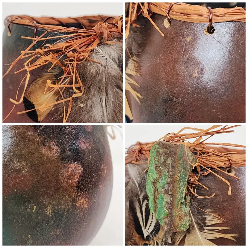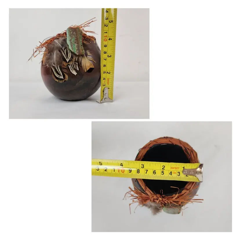 Brand: Handmade Type: Centerpiece Bowl Color: Brown Style: Decorative Theme: Fun & Curiosity, Novelty, Periods & Styles, Seasonal, Wildlife Material: Copper, Feather, Gourd, Plant, Raffia, Stone Room: Any Room, Bedroom, Den, Entryway, Foyer, Living Room, Lounge, Study, Sunroom
