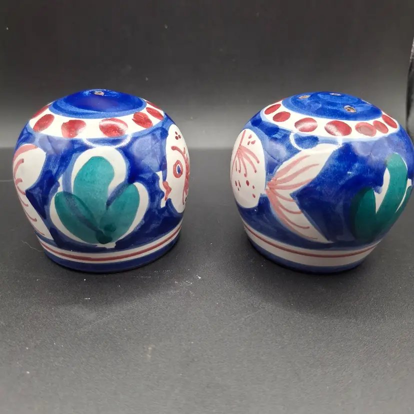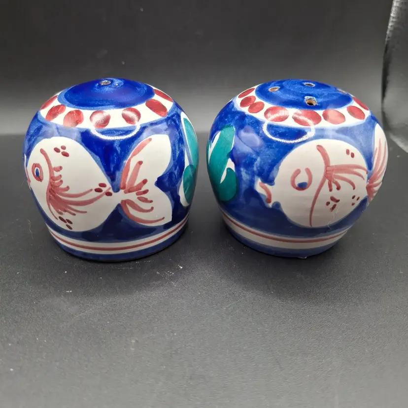 Crafted in the scenic Amalfi Coast by the renowned Solimene artisans, these salt and pepper shakers feature vibrant aquatic motifs. The hand-painted fish swim across lively blue hues, evoking the charm of coastal Italy. A delightful blend of functionality and artistry for your dining table.