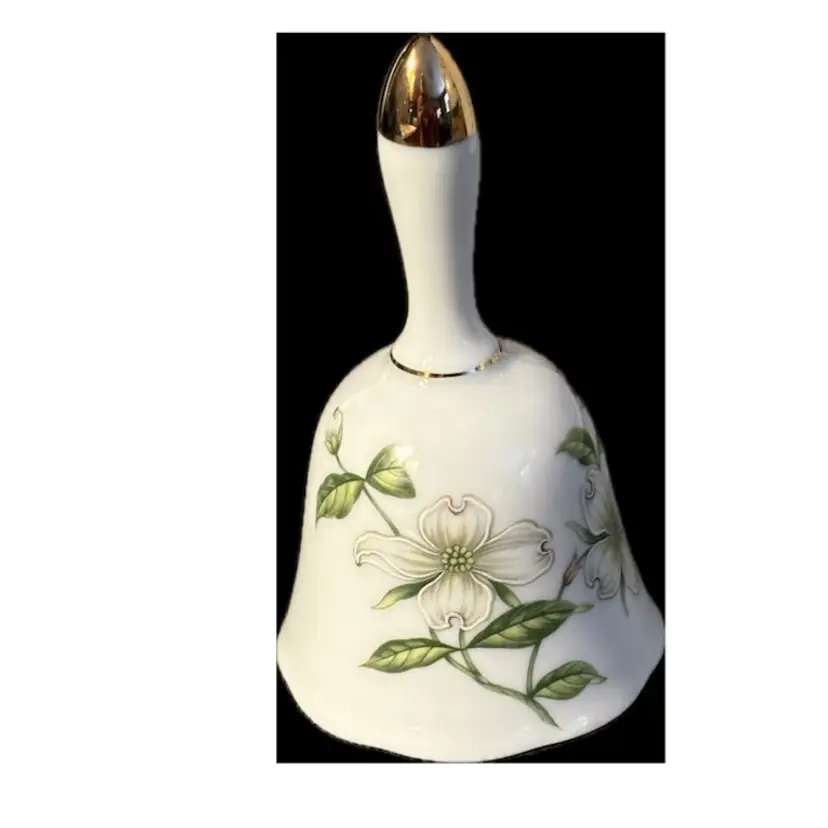 Hand painted dogwood blossoms, gold tipped stem, and fine gold line around base of stem are beautiful details that make this a collectible.