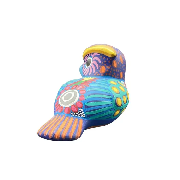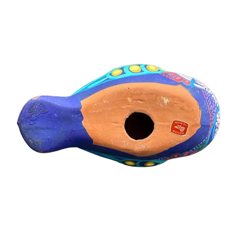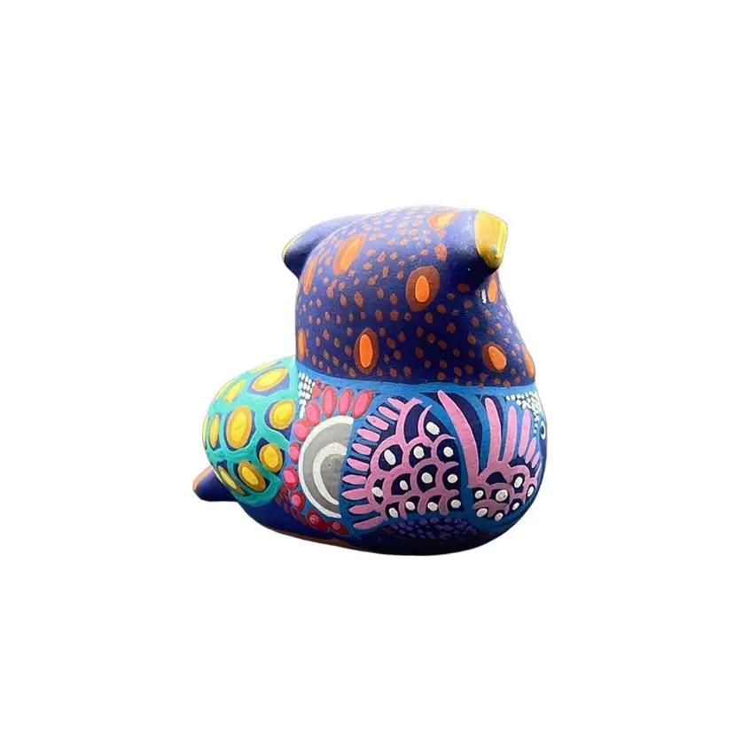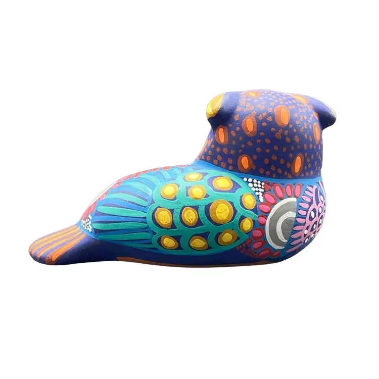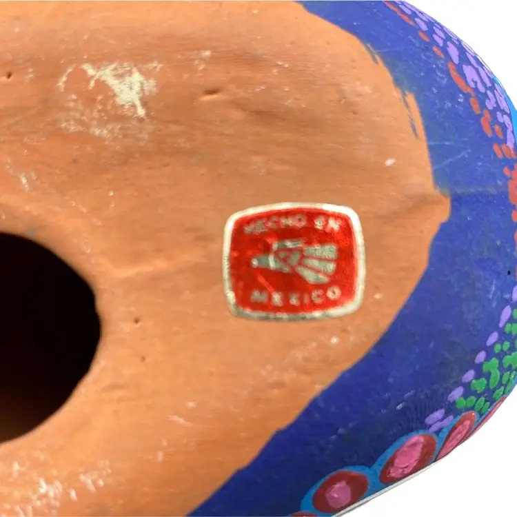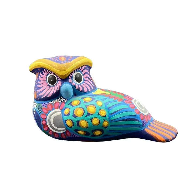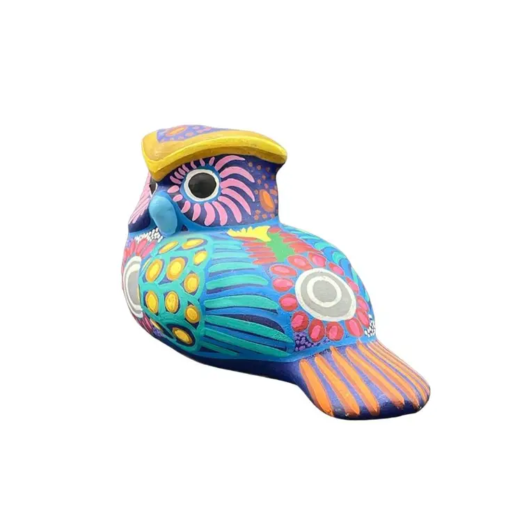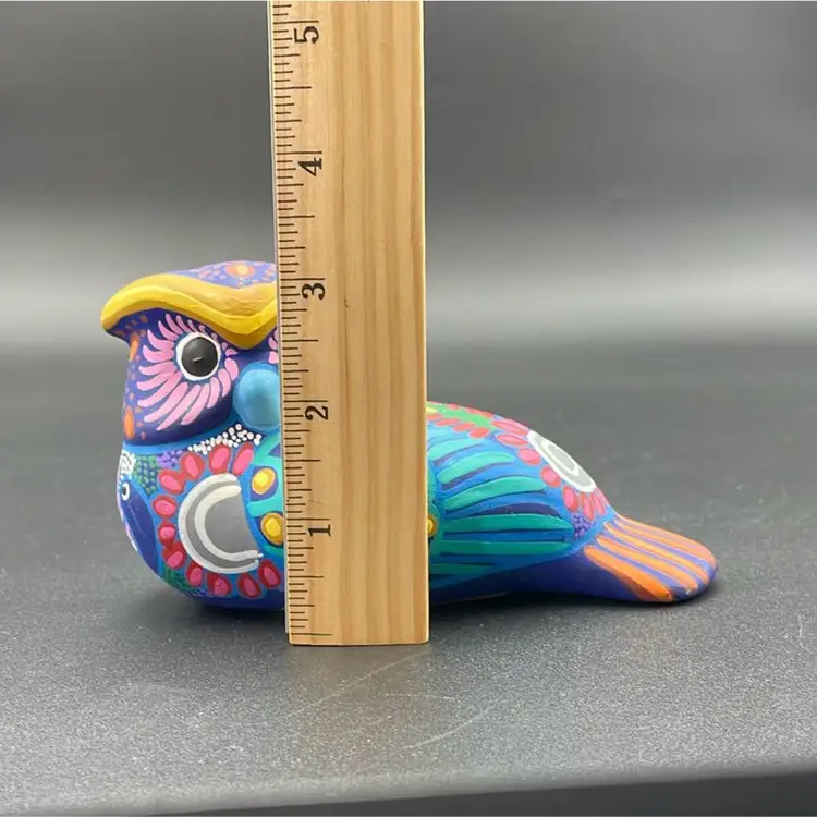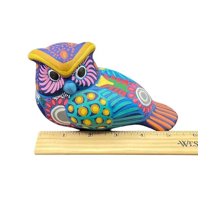 This is a hand painted matte finished Mexican pottery folk art owl figurine. The original label is attached. Measures approximately 5.5” long x 3” tall at the head. No chips or cracks.