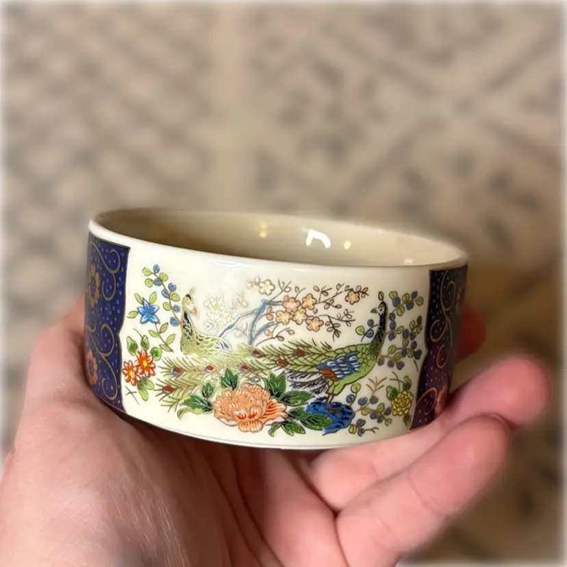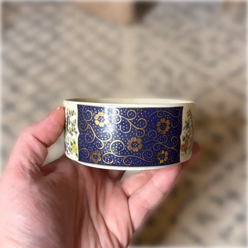 Hand-Painted Peacock Dish / Trinket / Bowl with Cobalt and Gold Details - Gold Gilding.