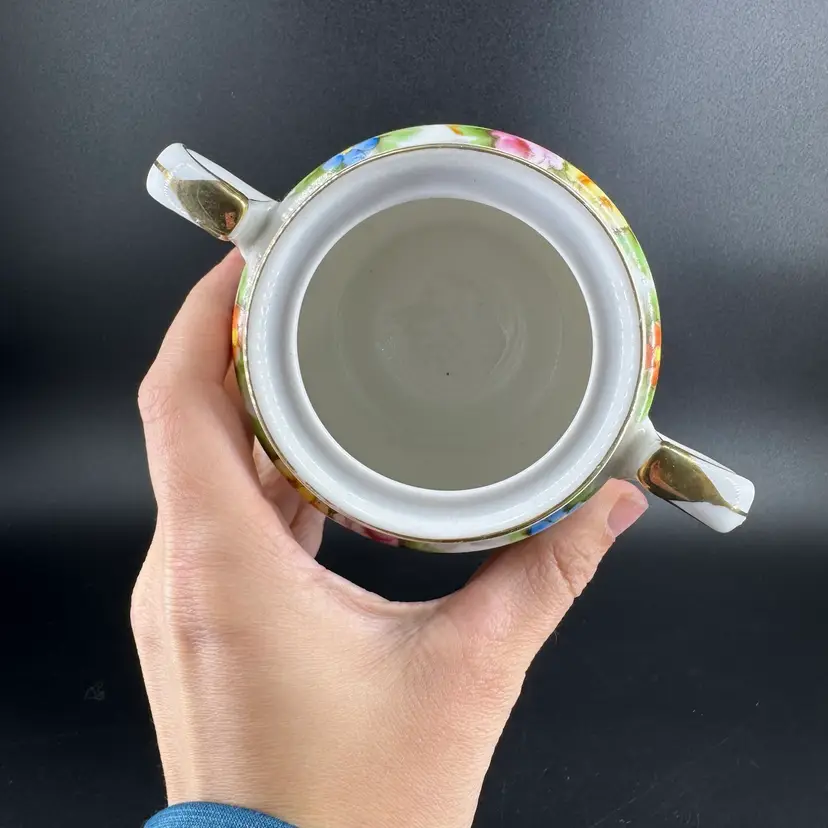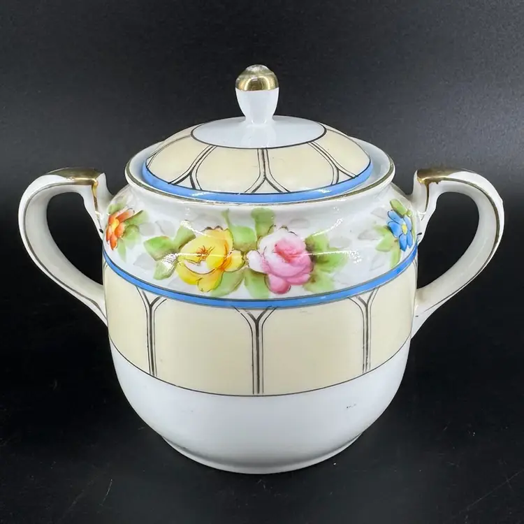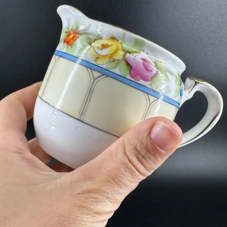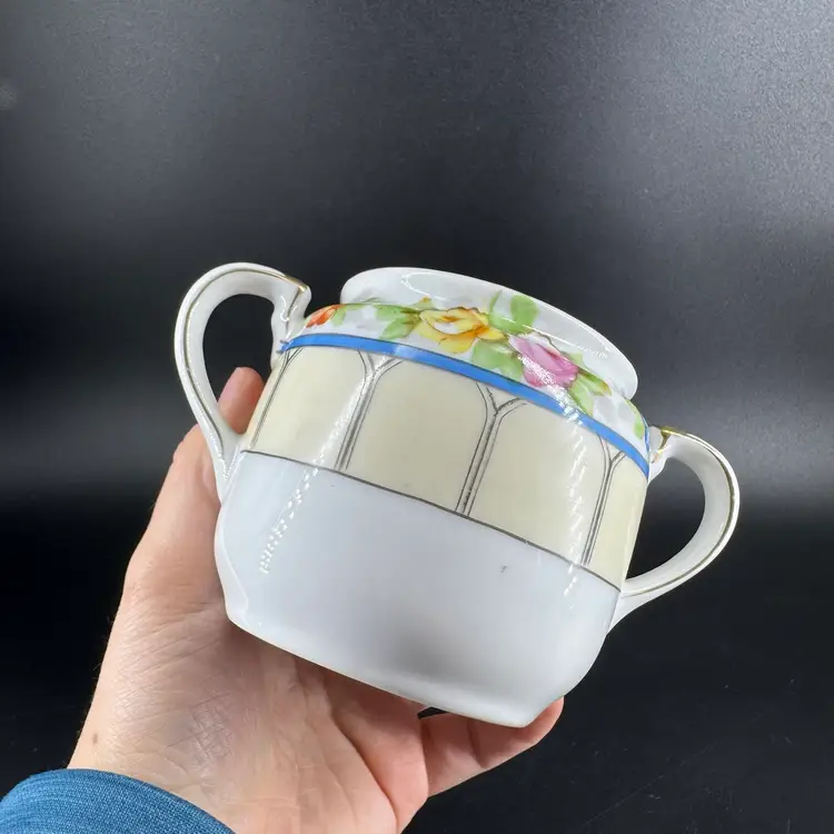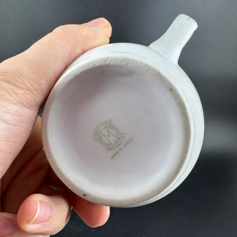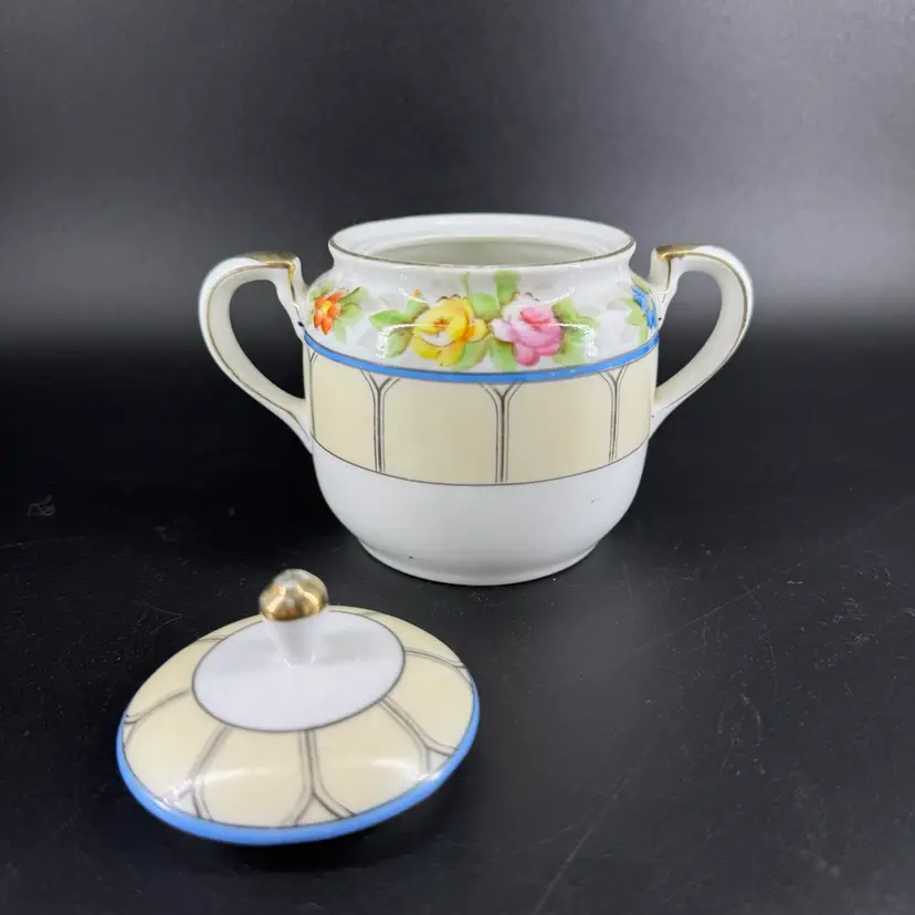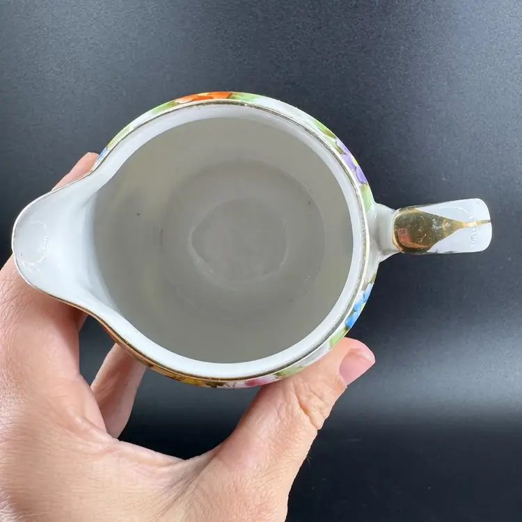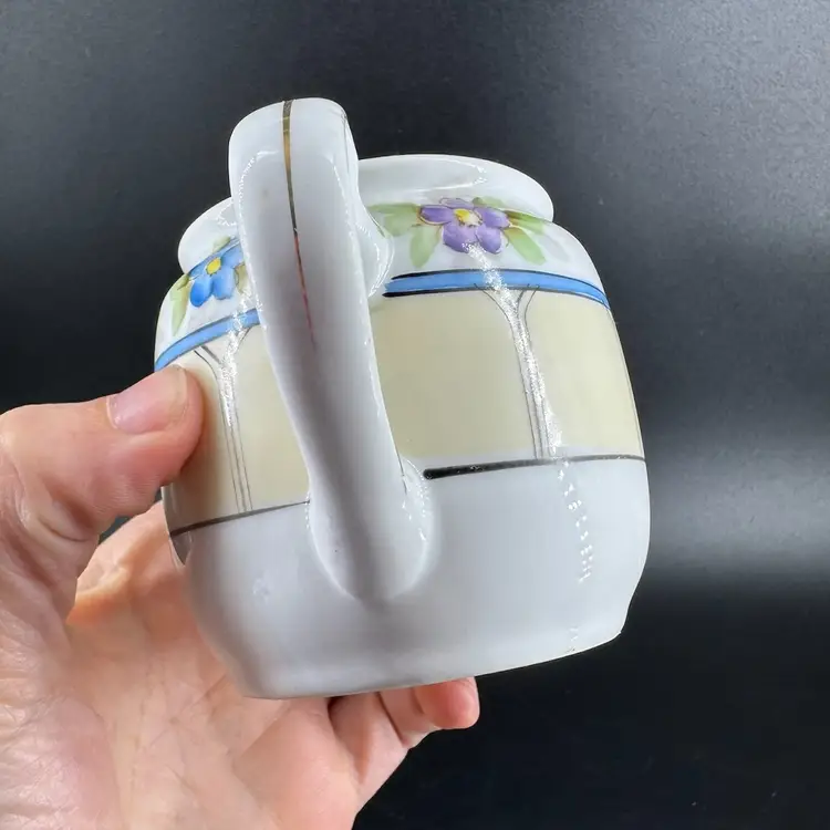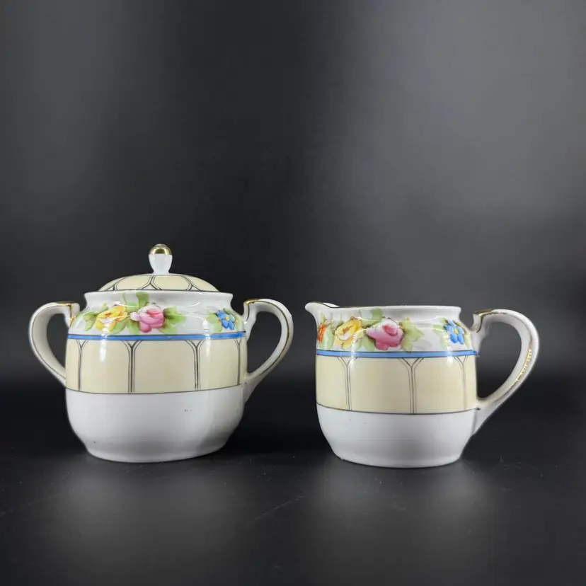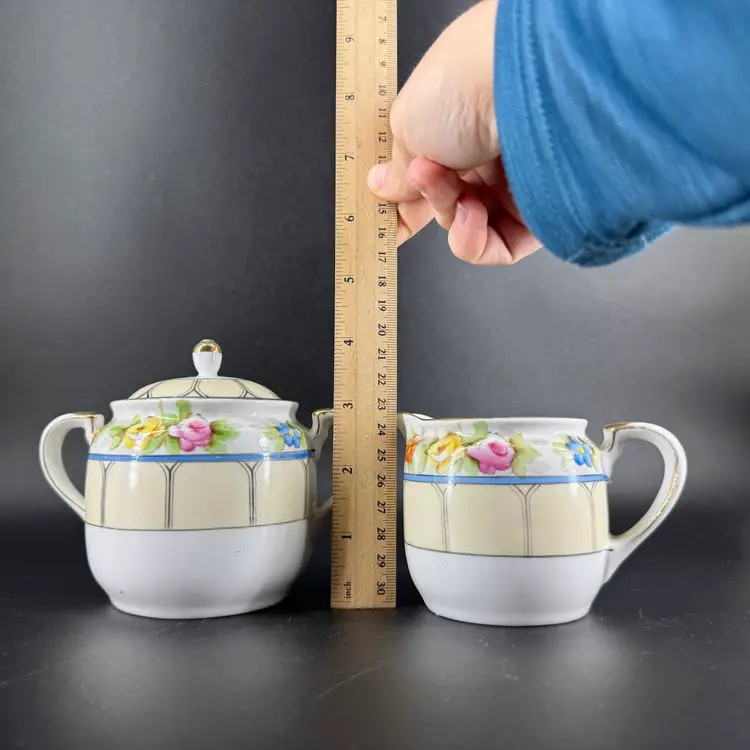 This Hand Painted Porcelain Noritake Creamer And Sugar height is approximately 3” and 4”. There are no chips or cracks. They are marked on the bottom Noritake.