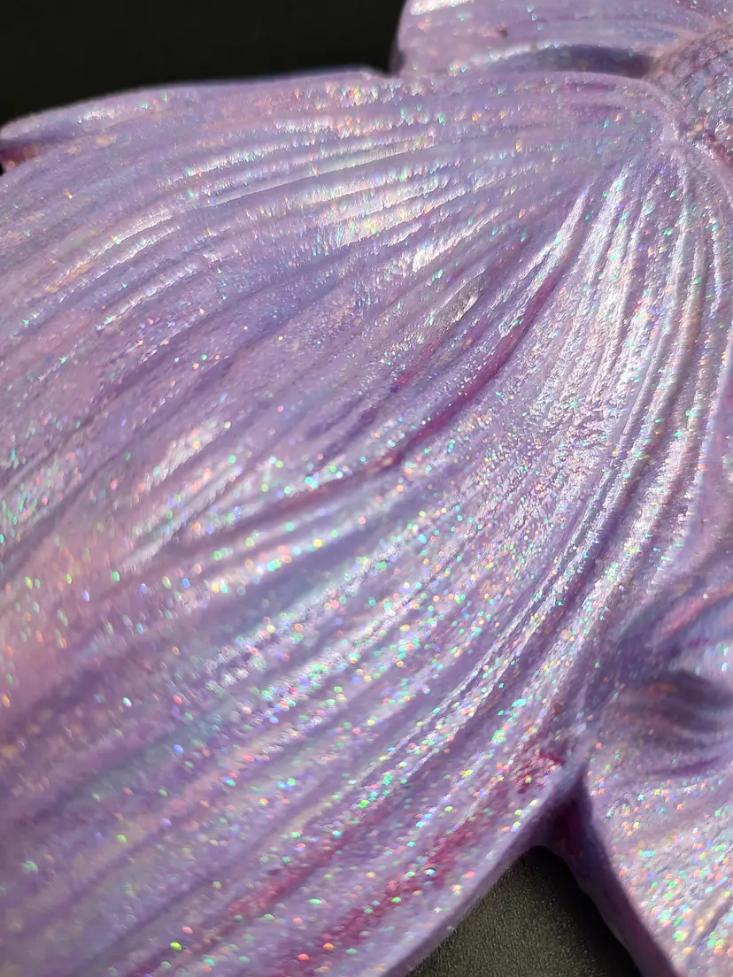 Hand Painted Chalkware Purple Glitter Batta Fish height 0.5" x width 7" x length 8".