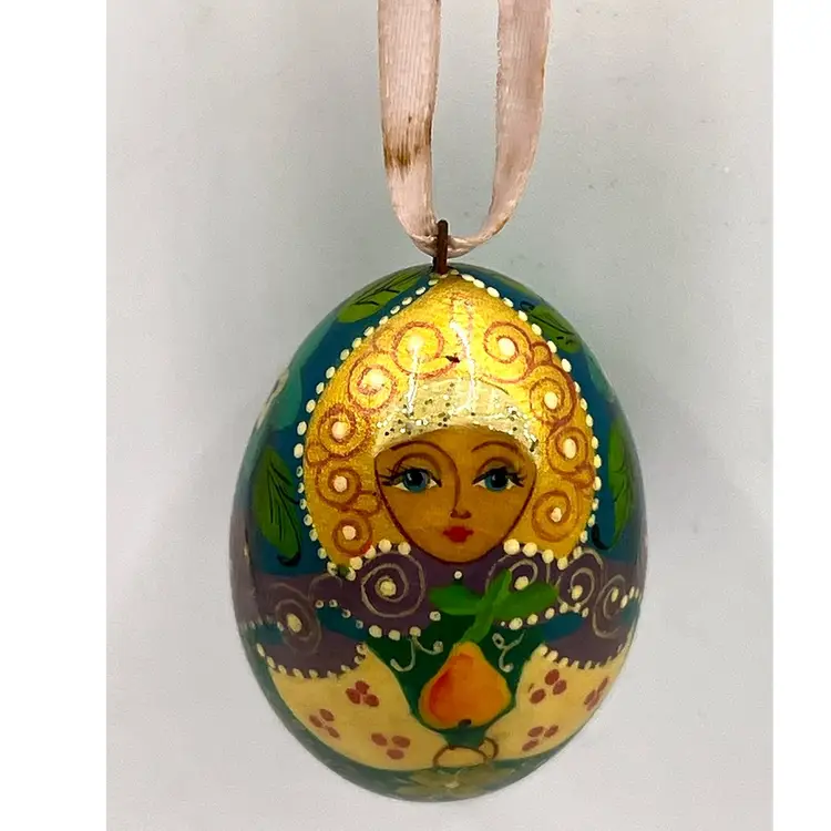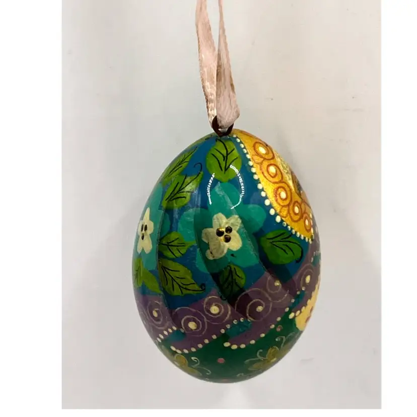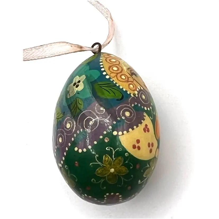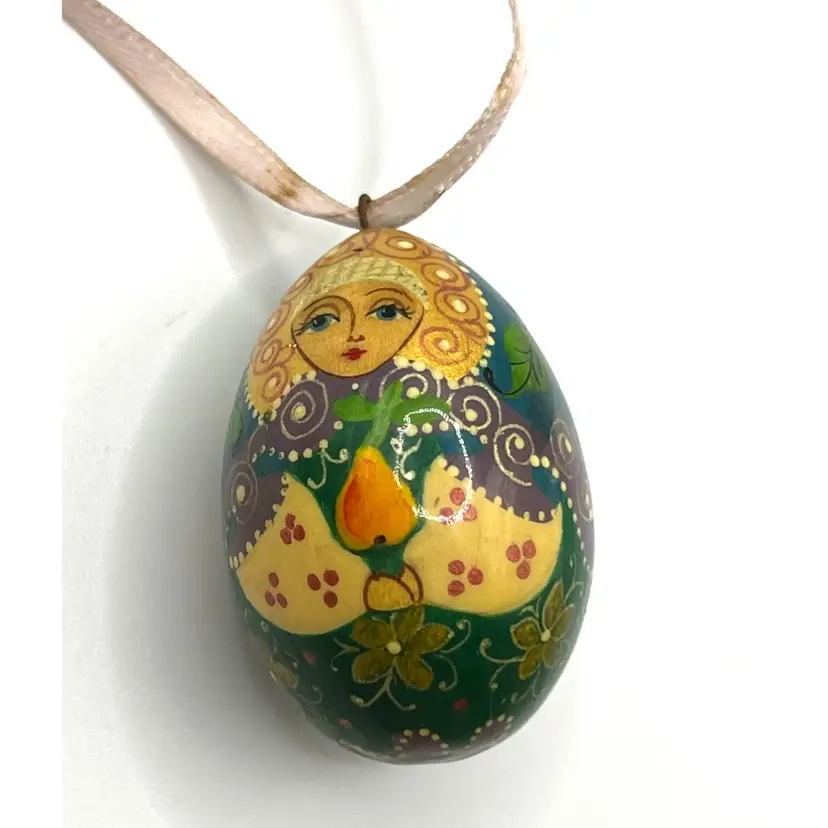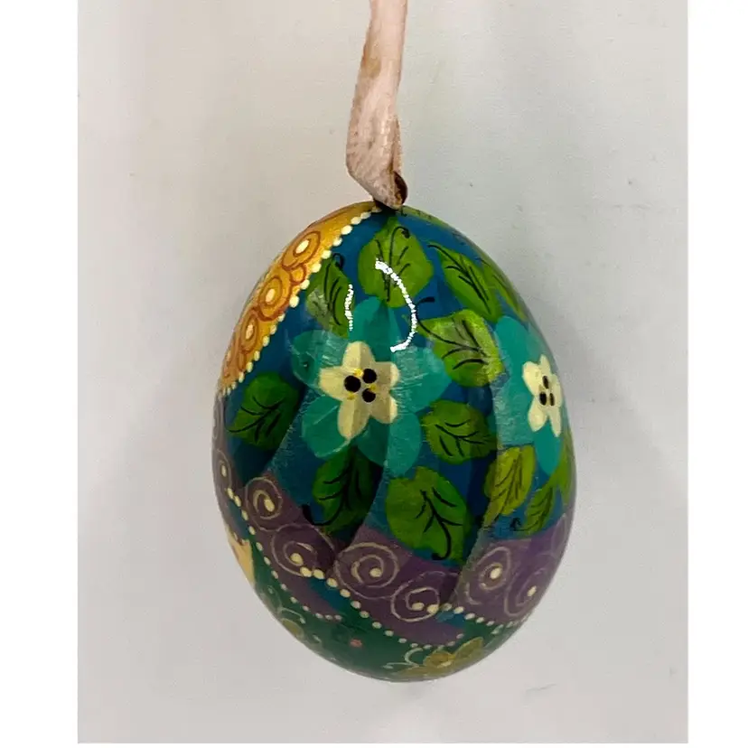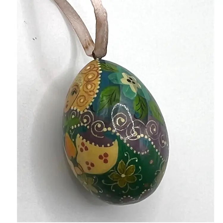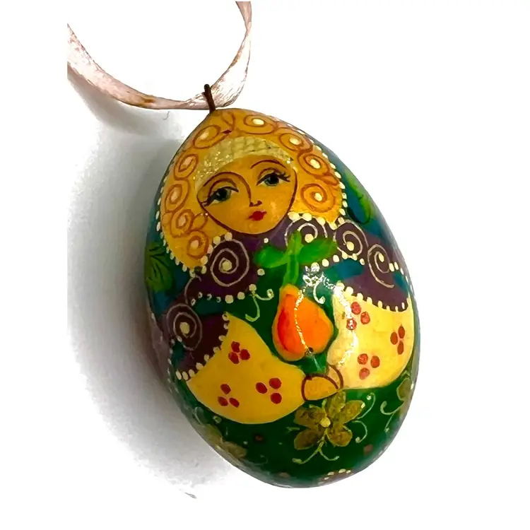 Hand Painted Russian Style Matreshka Doll Decorative Egg Shaped Floral Pattern Ornament 1.5 in Height, 1 in Width. No cracks